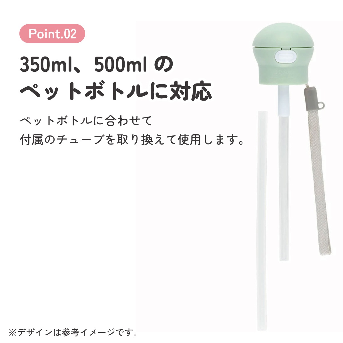 ペットボトルに合わせて付属のチューブを取り換えて使用します♪