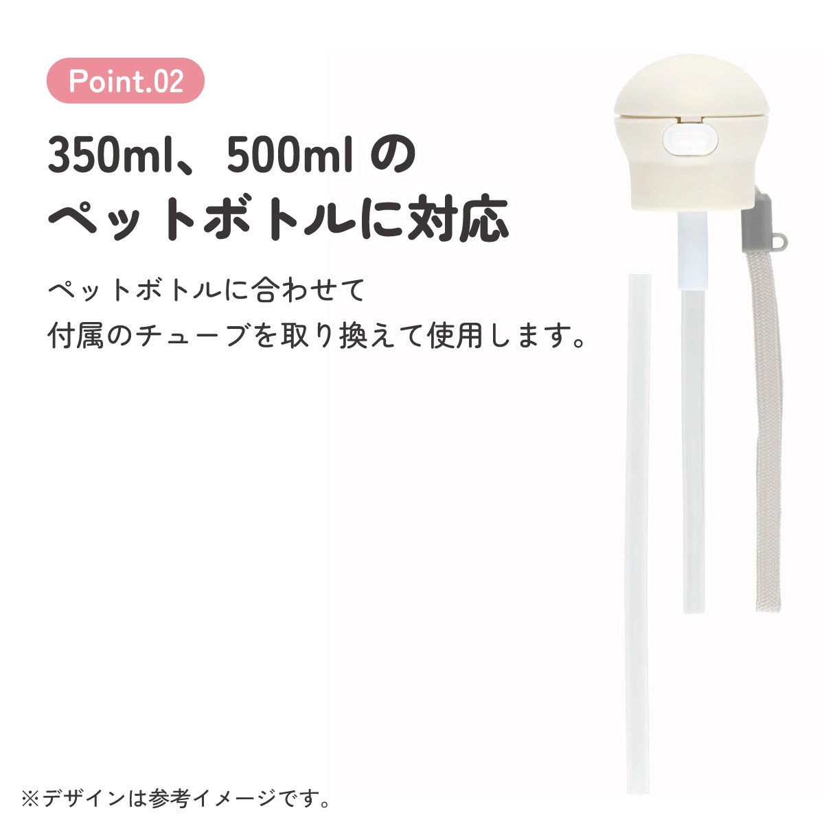 ペットボトルに合わせて付属のチューブを取り換えて使用します♪
