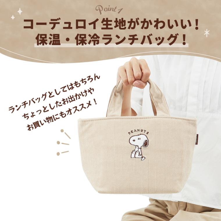 ランチバッグ コーデュロイ生地 保温 保冷 ランチ バッグ スケーター skater KCOB2 スヌーピー SNOOPY ピーナッツ 女性 レディース【アルミ蒸着 かばん お弁当 ランチバッグ 子供 こども キッズ かわいい おしゃれ】