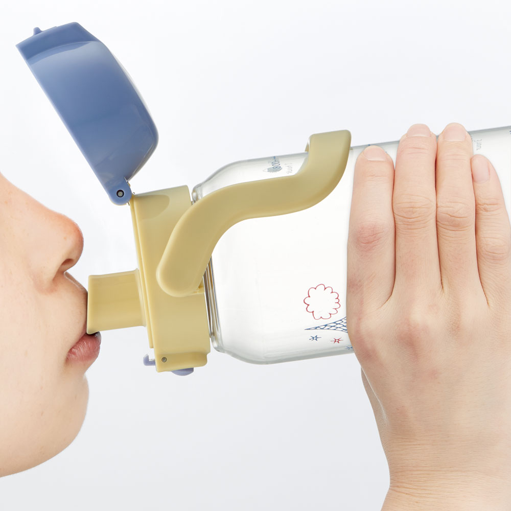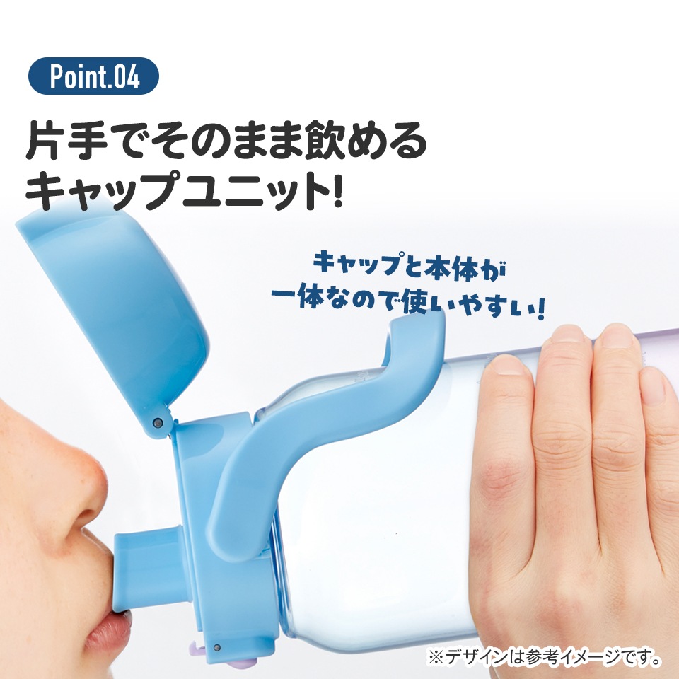 キャップを開けたらすぐ飲める斜め形状で飲みやすいダイレクト飲み口。