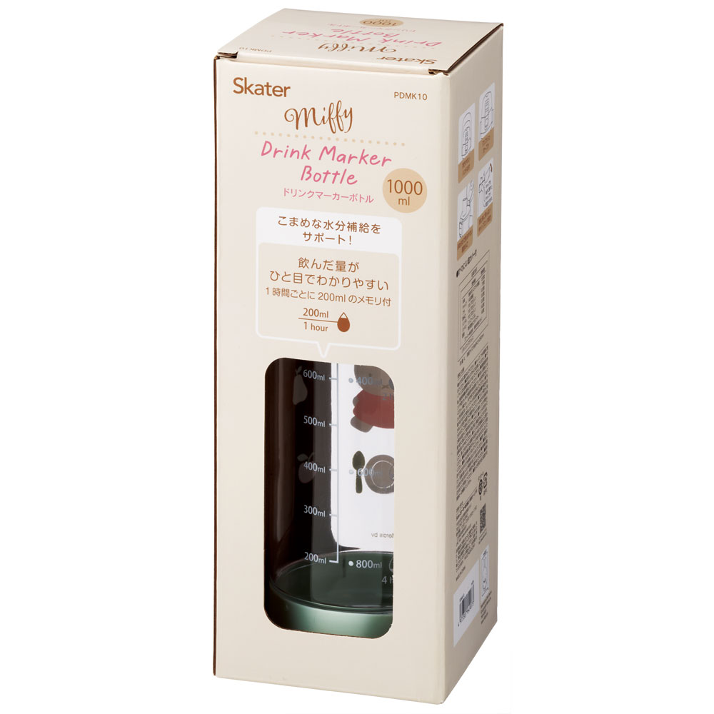 ドリンク マーカー ボトル 1000ml 1L 水筒 直飲み 水分補給 メモリ付き 透明 スケーター skater PDMK10 ミッフィー Miffy うさこちゃん 女の子 女性【ダイレクト ボトル 目盛り クリア 子供 こども キッズ 公園 アウトドア スポーツ】