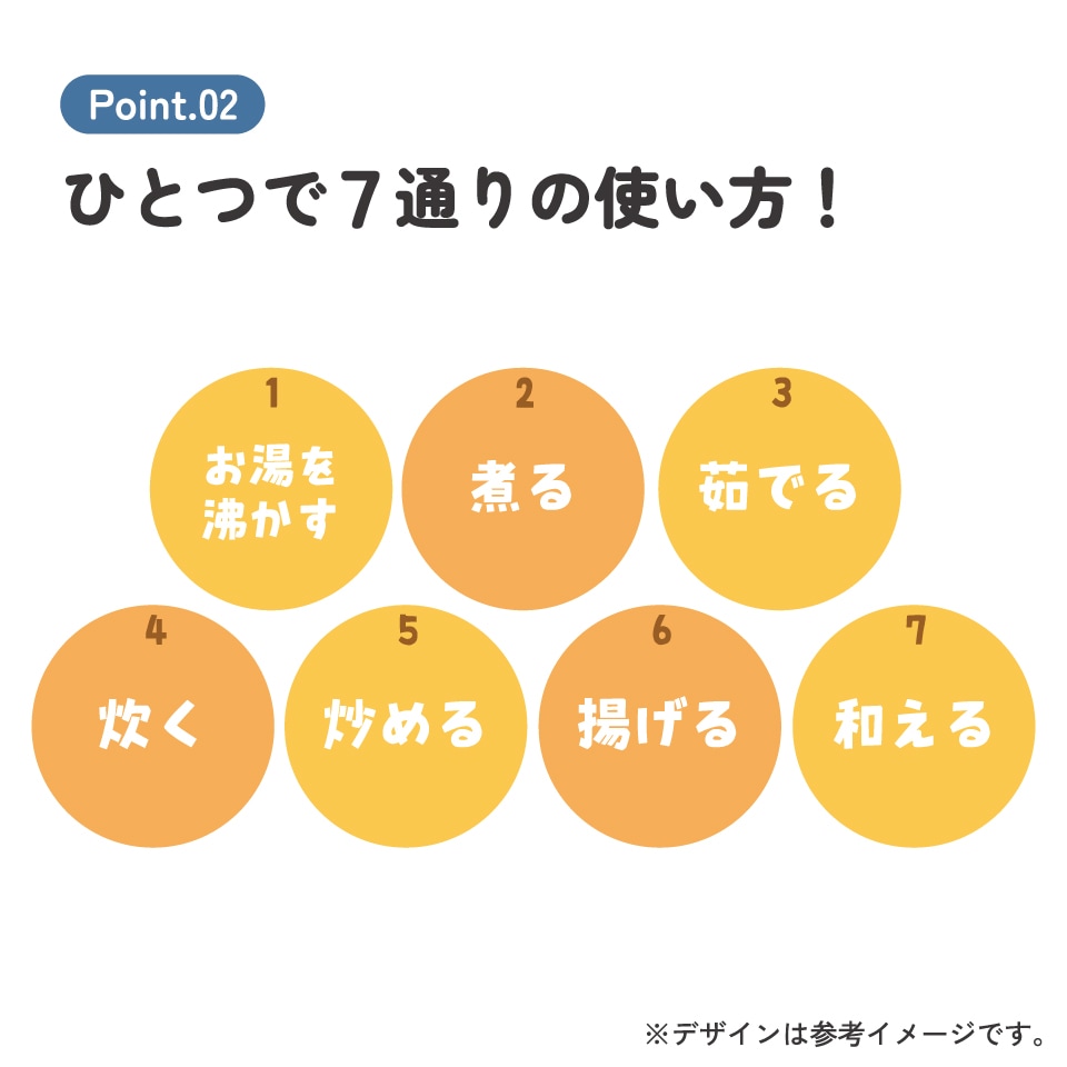 お湯を沸かす以外にも、煮る・茹でる・炊く・炒める・揚げる・和えるなど、様々な使い方ができる便利な調理器具です!