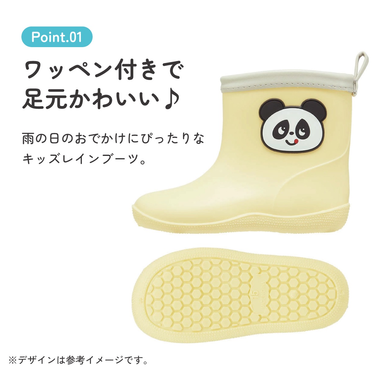 ワッペン 付き レインブーツ 長靴 キッズ 子供 15cm おしゃれ かわいい スケーター skater RIBTW15 ゴパン パンダ パンダ柄 ぱんだ 男の子 女の子