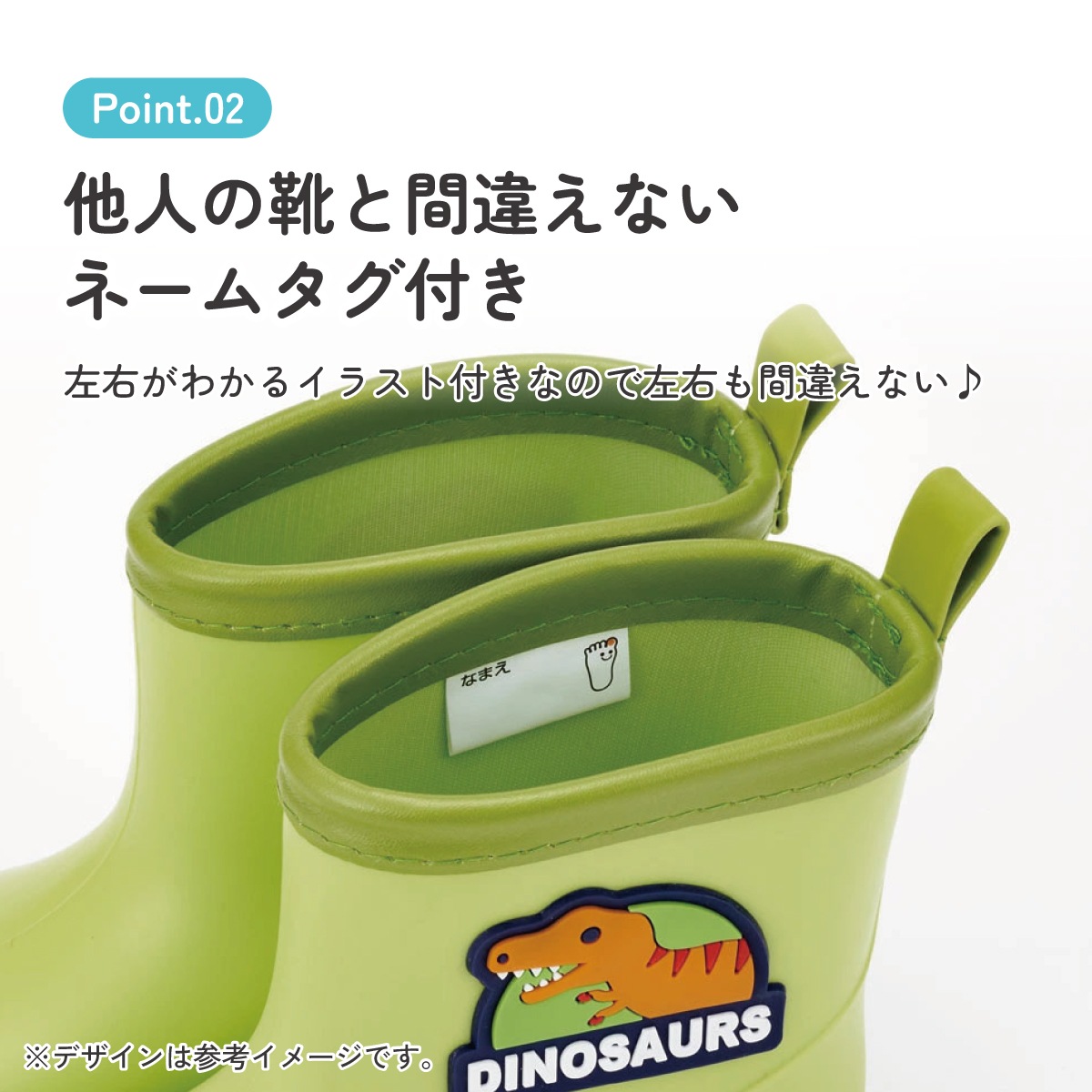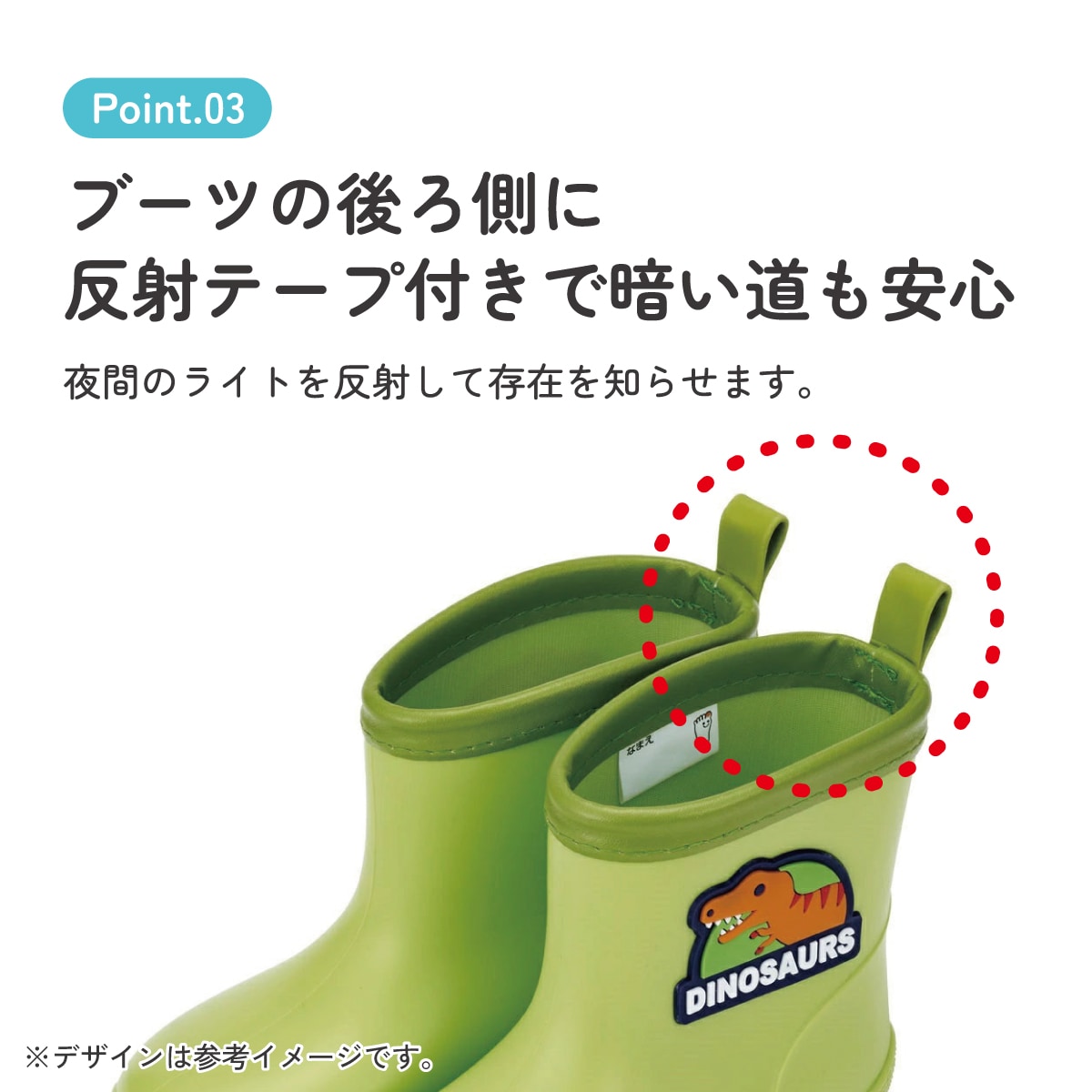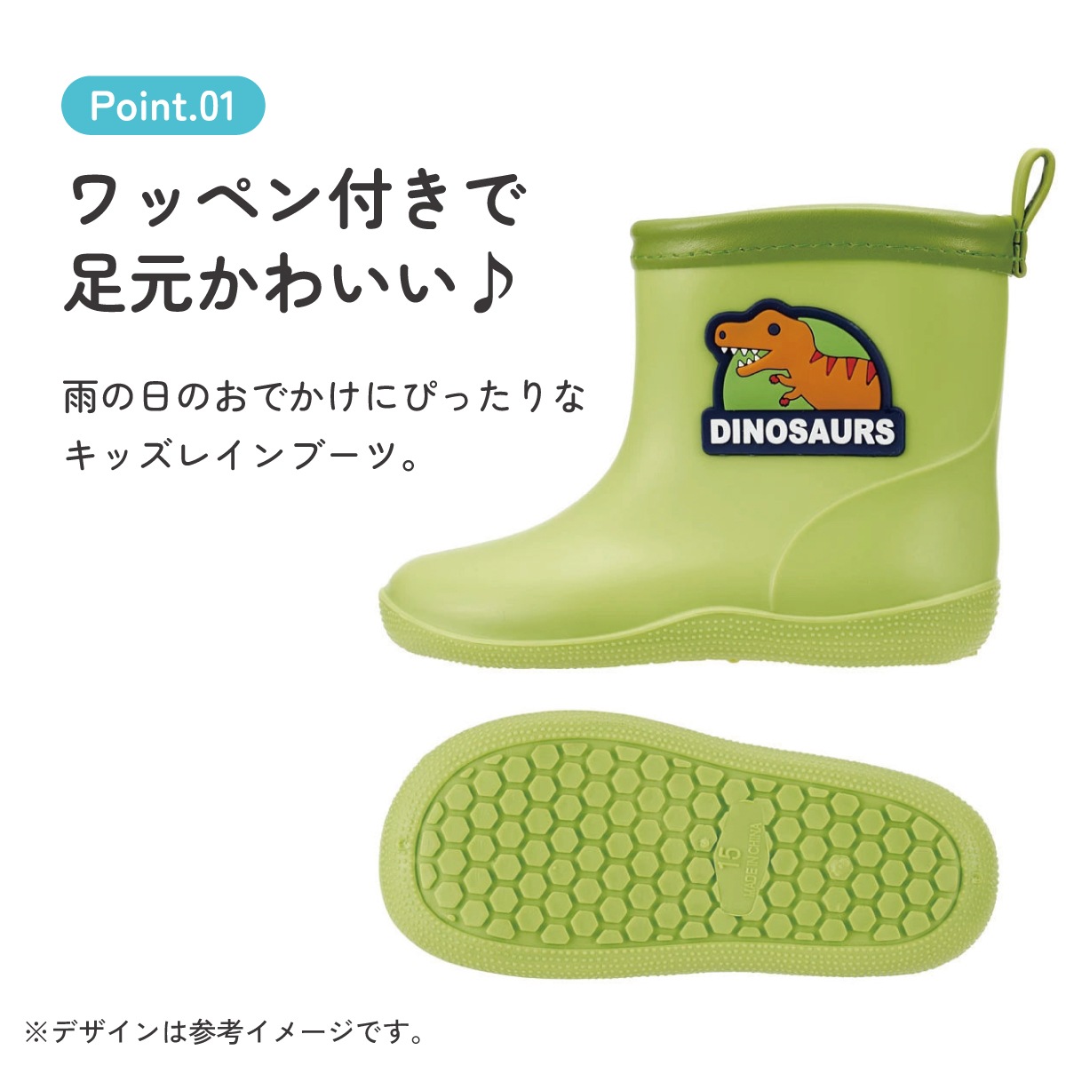 ワッペン 付き レインブーツ 長靴 キッズ 子供 15cm おしゃれ かわいい スケーター skater RIBTW15 ディノサウルス 恐竜 ダイナソー 男の子 男子