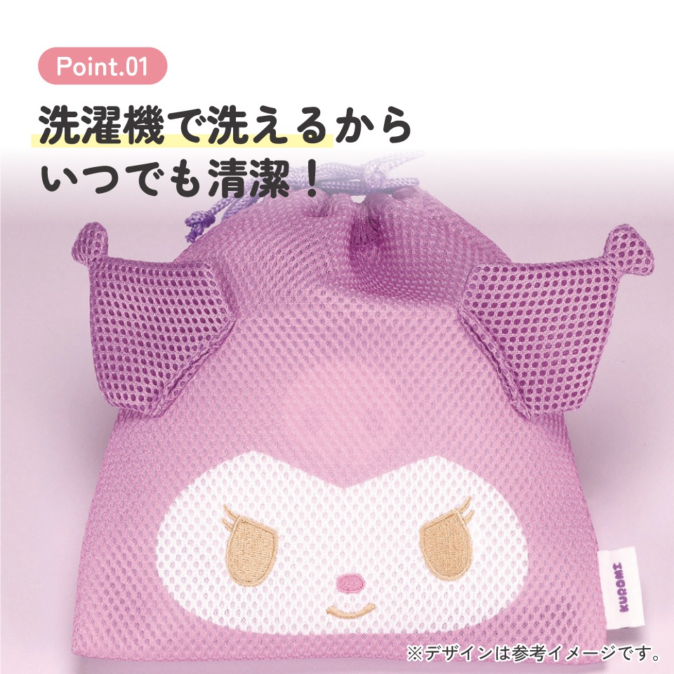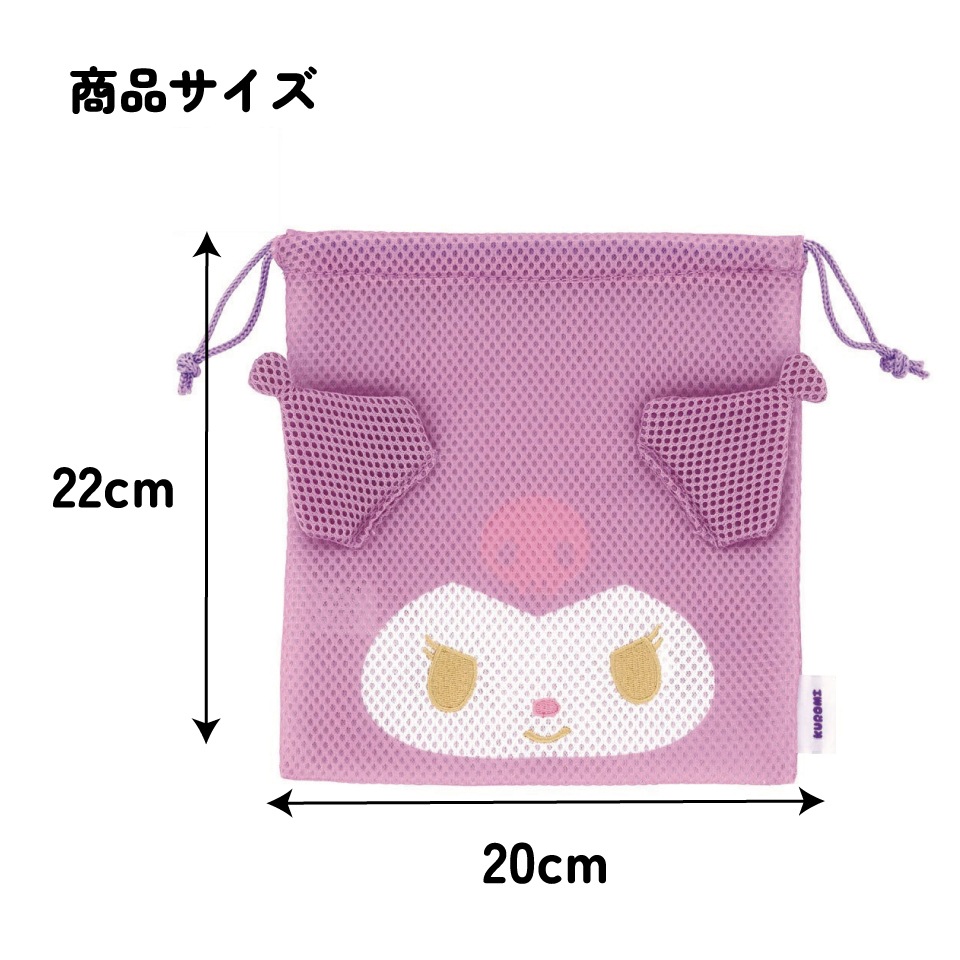 【メール便対象品】 メッシュ 生地 巾着 ポーチ まるごと洗える 洗濯機 軽い かわいい 小物入れ スケーター skater ZKM1 クロミ クロミちゃん 女の子 女子【キャラクター 可愛い 便利 小分け】