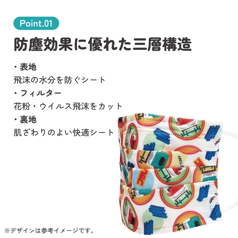 不織布 マスク 三層構造 平ゴム 子供用 キッズ 99%カット プラレール Plarail 電車 新幹線 男の子 男子
