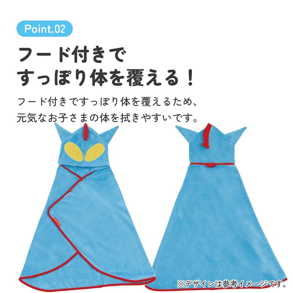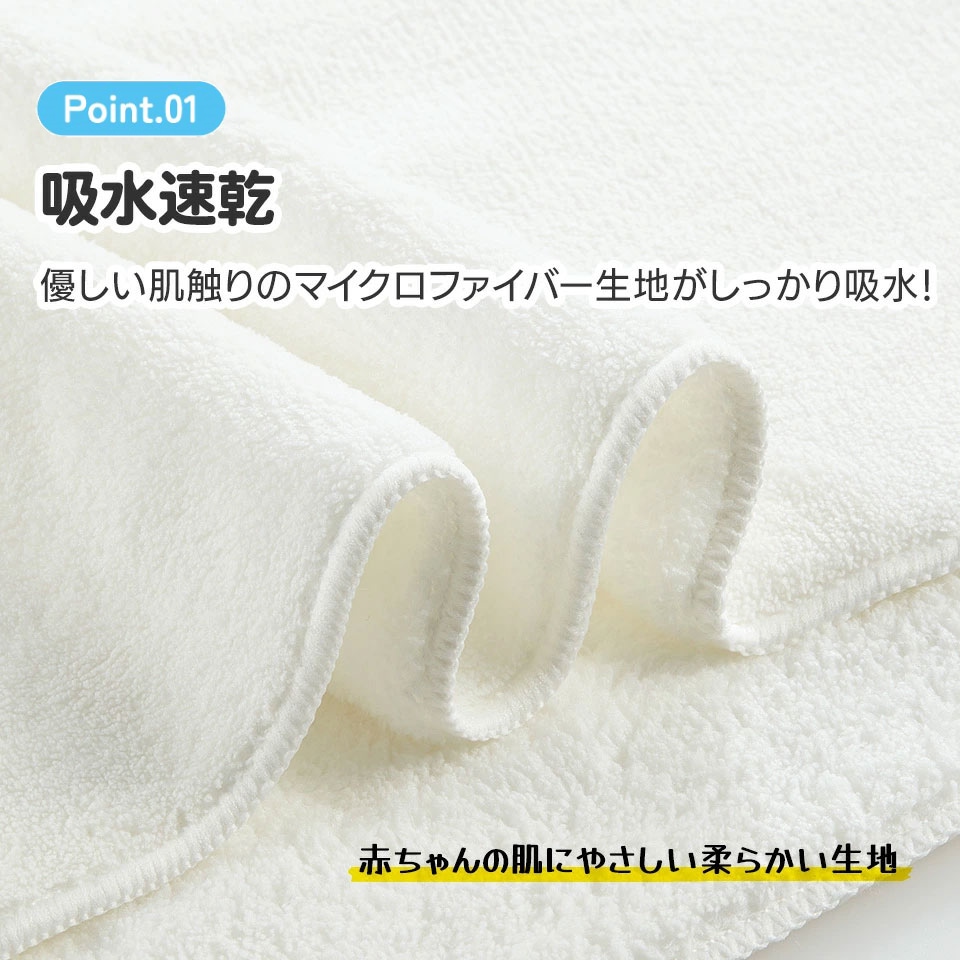 フード付きですっぽり体を覆えるため動き回る子供の体を拭きやすい!