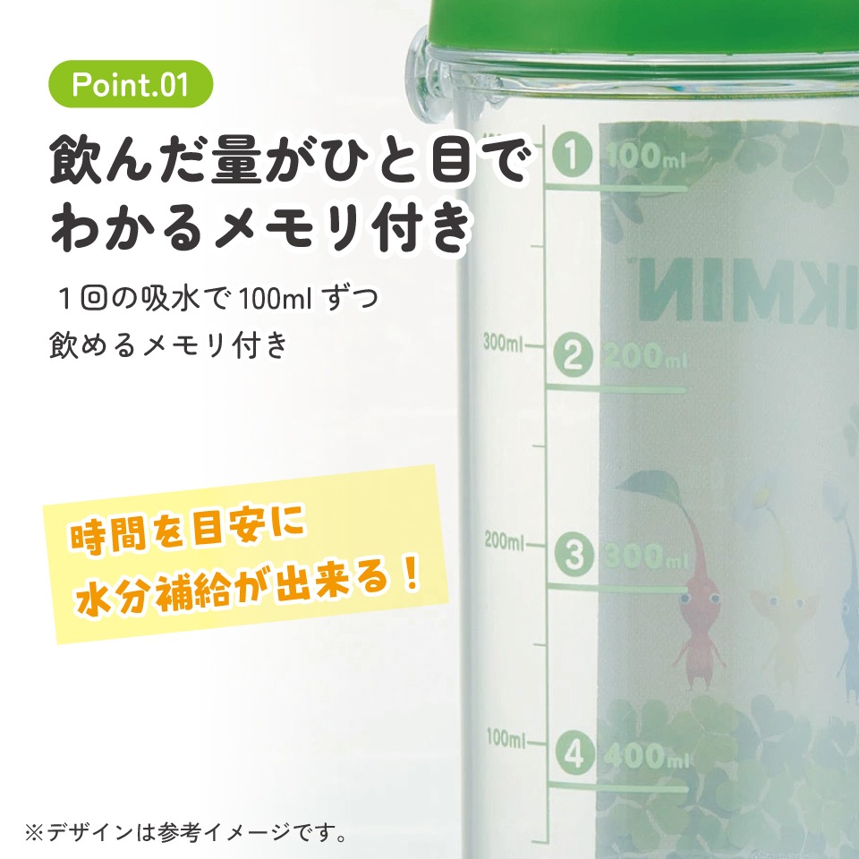 メモリが付いているので、時間を目安に効果的に水分補給が出来ます。