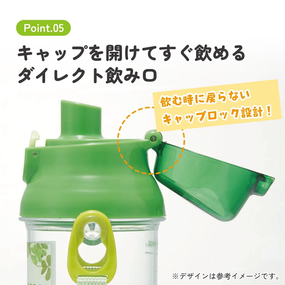 キャップを開けてすぐ飲めるダイレクト飲み口。