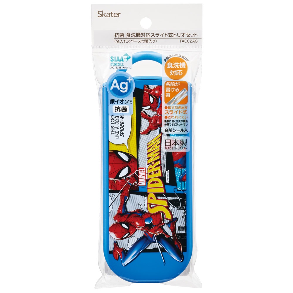 【メール便対象品】子供用 抗菌 お弁当 トリオセット 開けやすいスライド式(箸、スプーン、フォークのセット) スパイダーマン25/TACC2AG_4973307689413