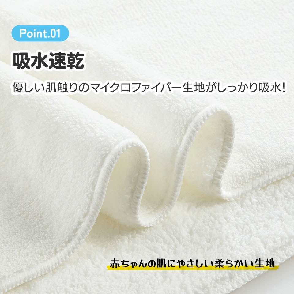 フード付きですっぽり体を覆えるため動き回る子供の体を拭きやすい!