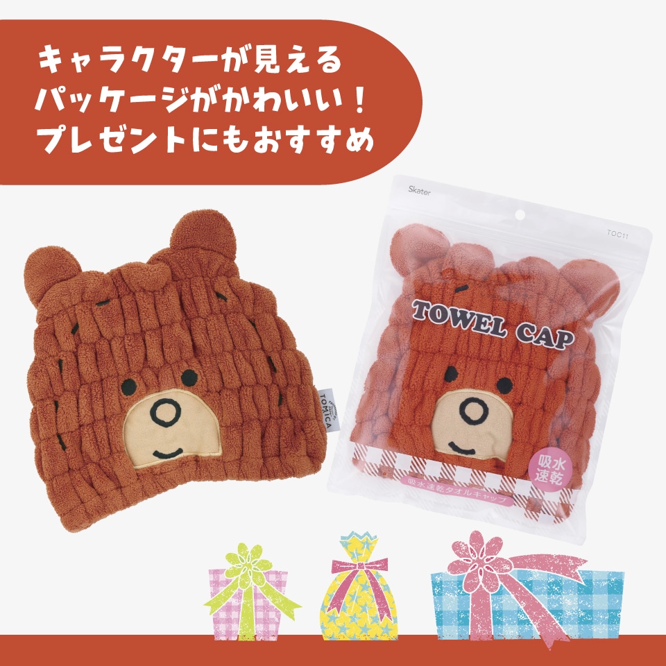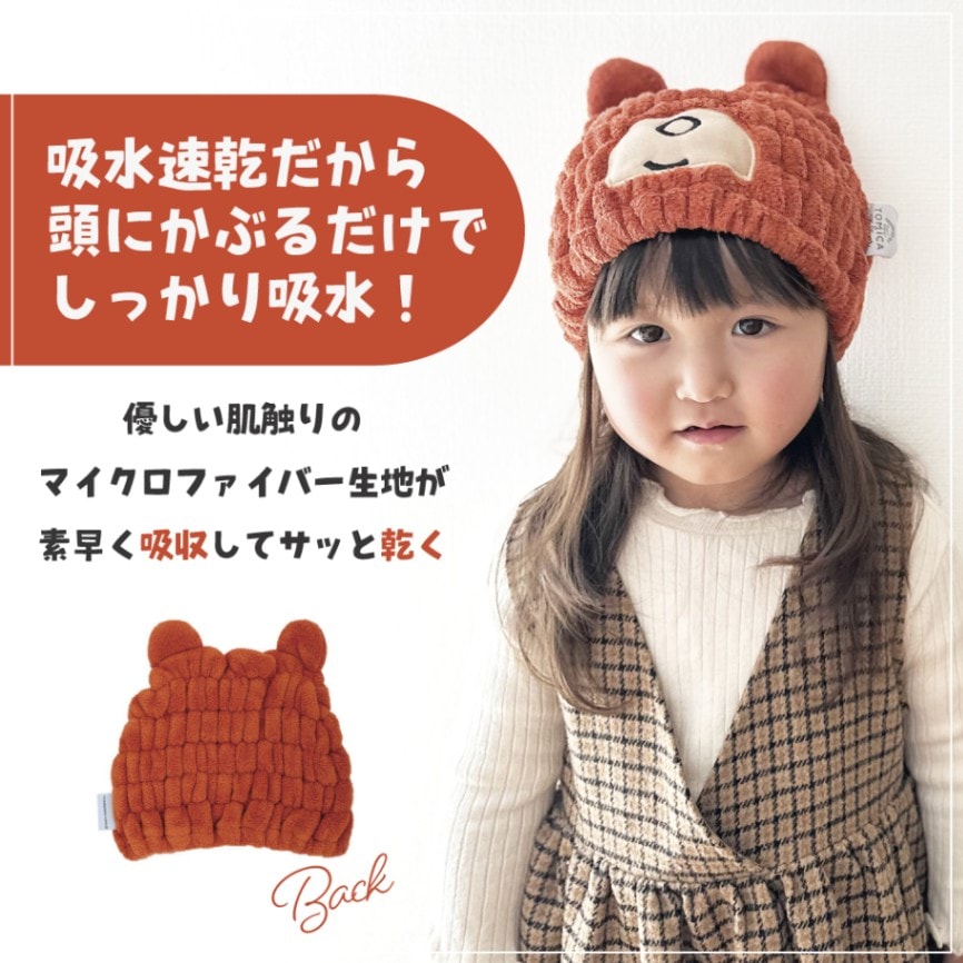 かぶるだけでかわいいキャラクターに変身!親子で楽しくお風呂上がりの時間を楽しめる。
