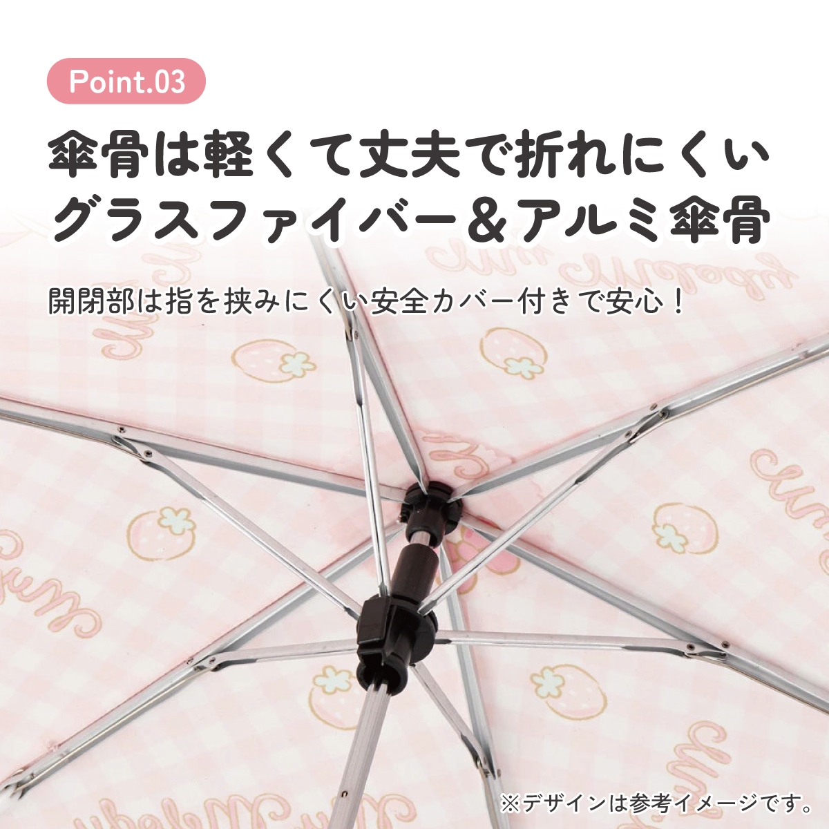 傘骨は軽くて丈夫で折れにくいグラスファイバー&アルミ傘骨。