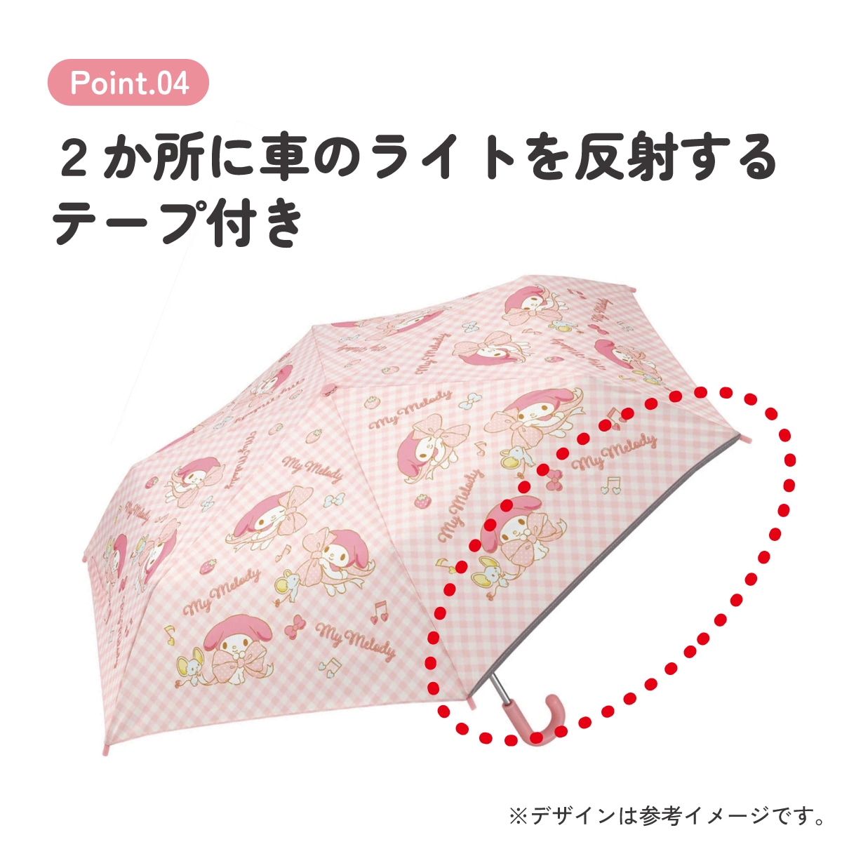 2か所に車のライトを反射するテープ付き。