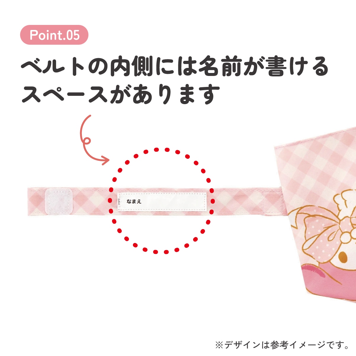 ベルトの内側には名前が書けるスペースがあります。