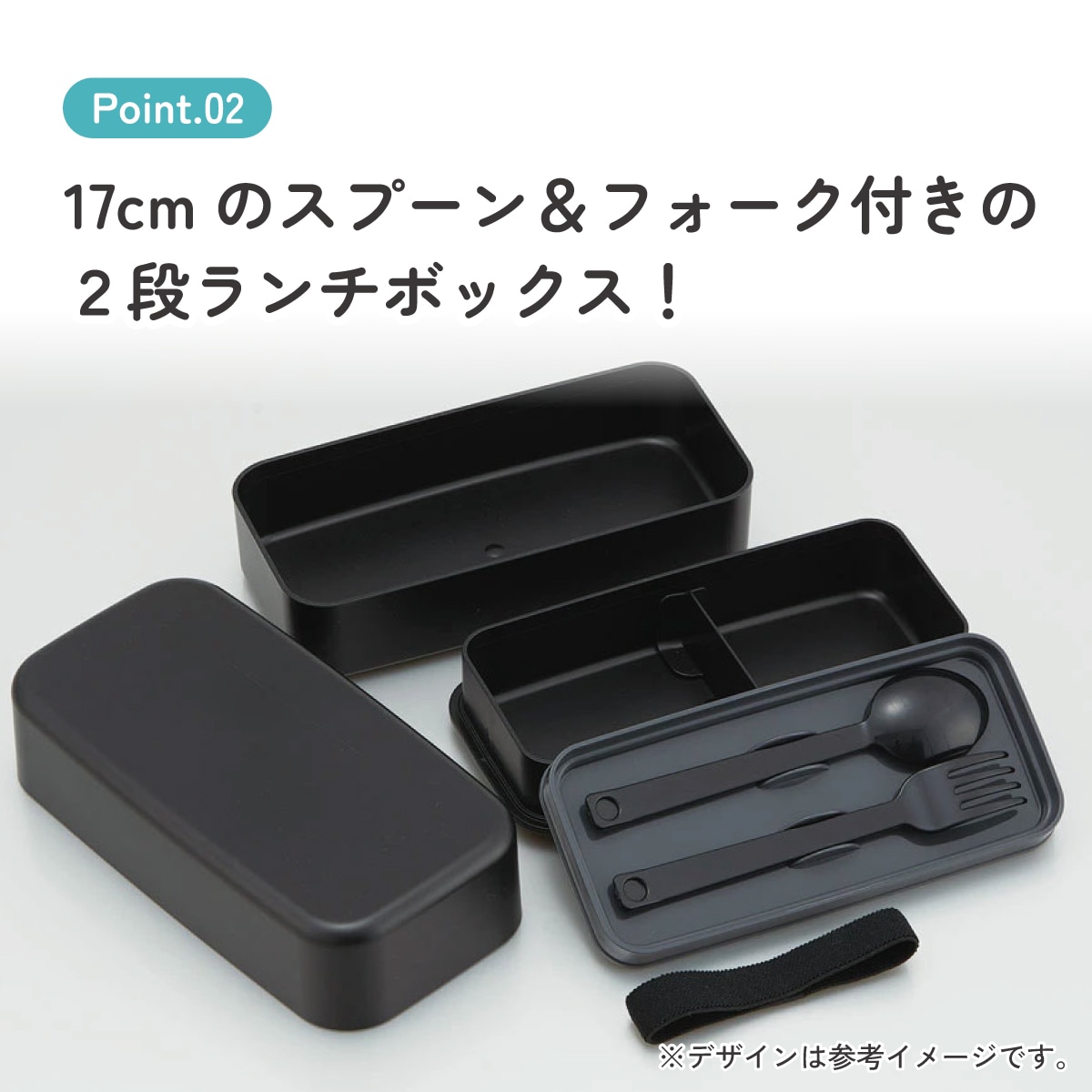 17㎝のスプーン&フォーク付きの2段ランチボックス!