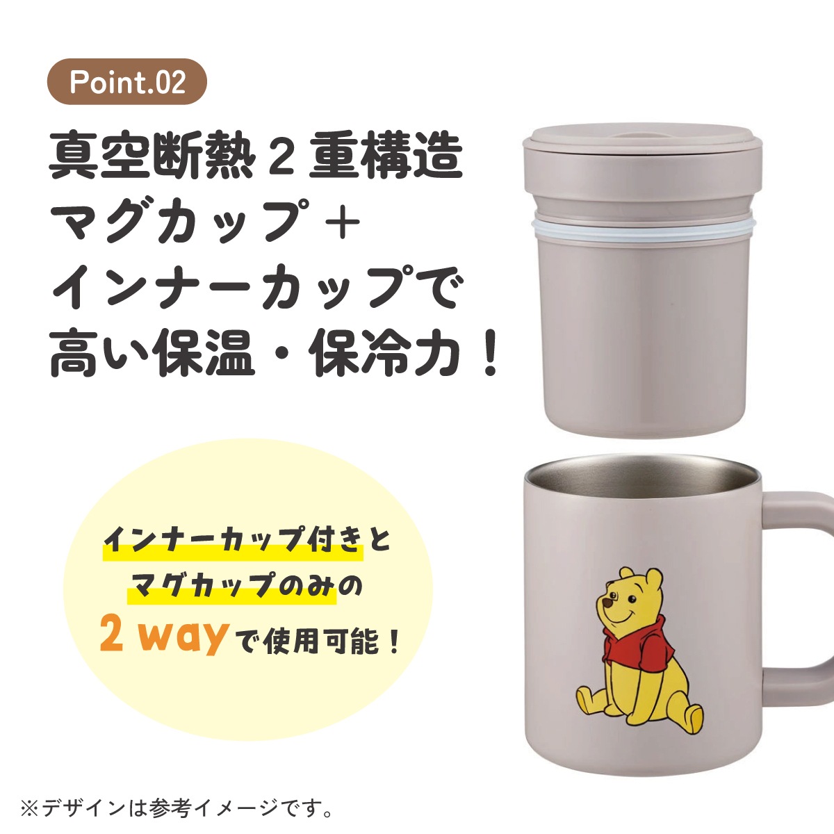 インナーカップ付きとマグカップのみの2wayで使用可能!