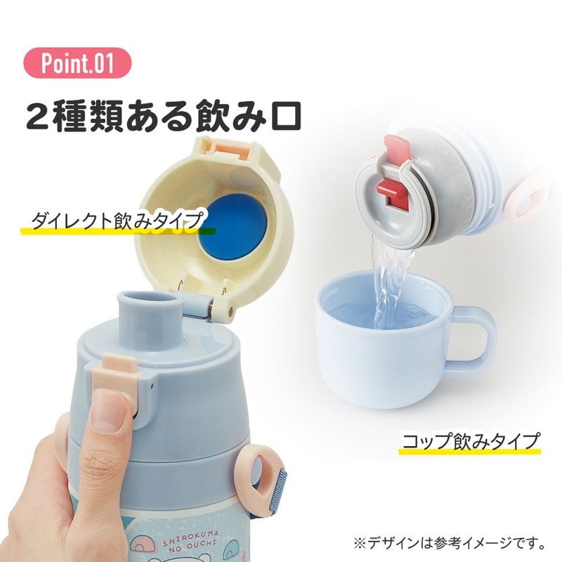 超軽量 直飲み コップ飲み兼用 2WAYステンレスボトル 470ml/430ml すみっコぐらし しろくまふるさと/SKDC4_4973307691720
