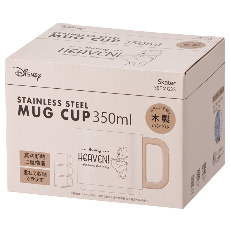 スタッキング ステンレスマグ 350ml 保温 保冷 持ち手付 コップ キャラクター スケーター skater SSTMG3S くまのプーさん プーさん Pooh 女性 レディース【木製ハンドル付き ステンマグ おしゃれ】
