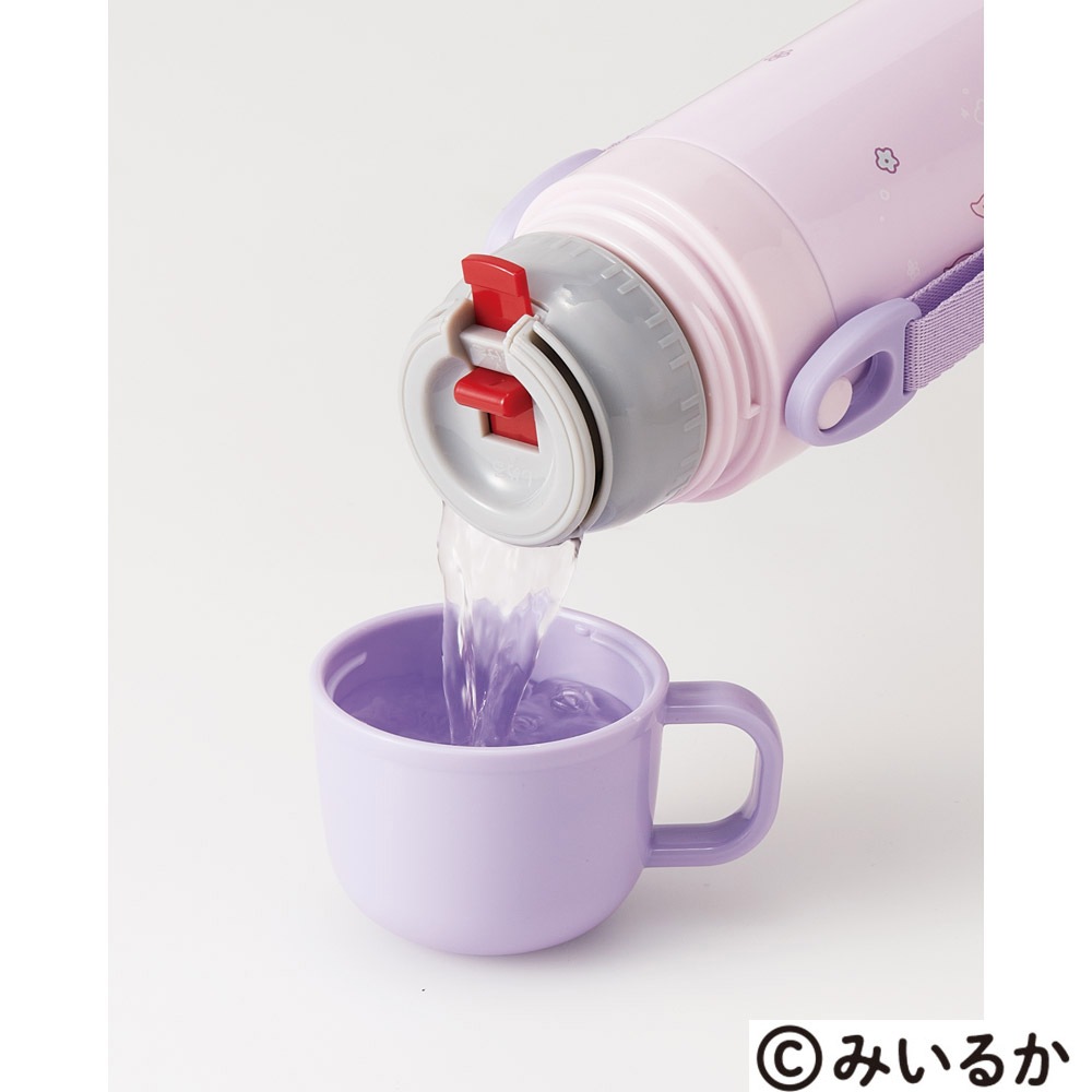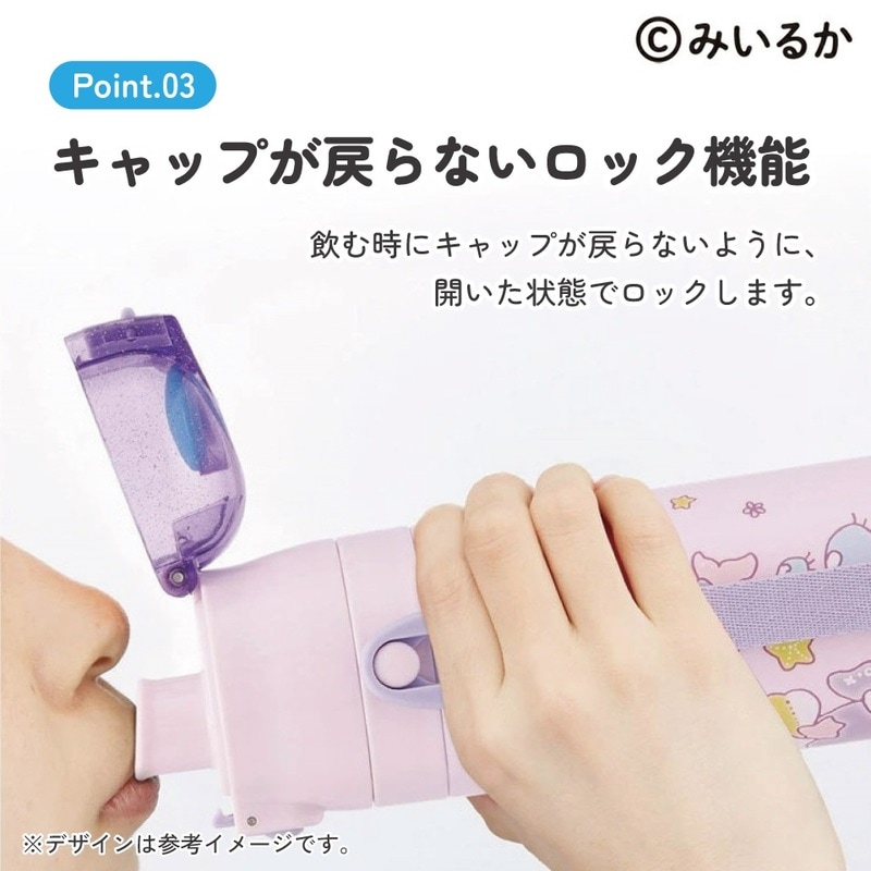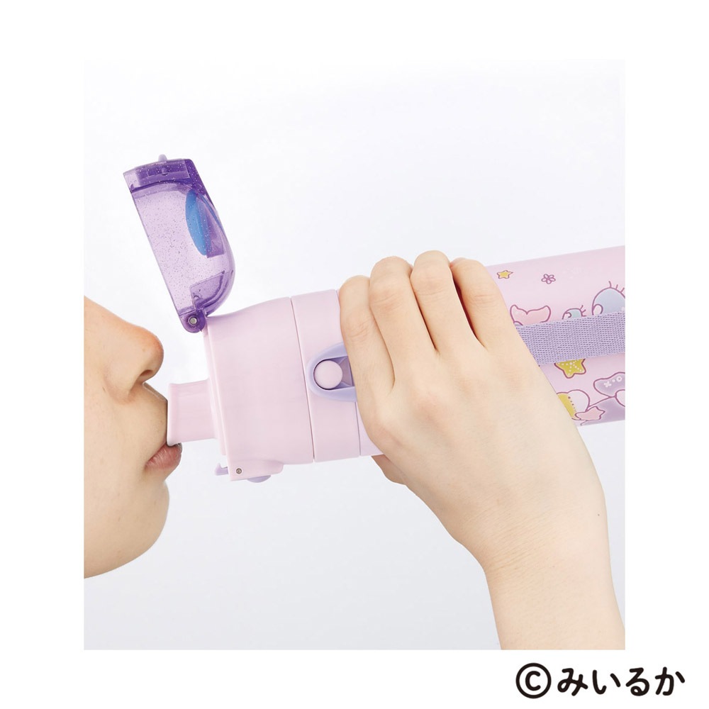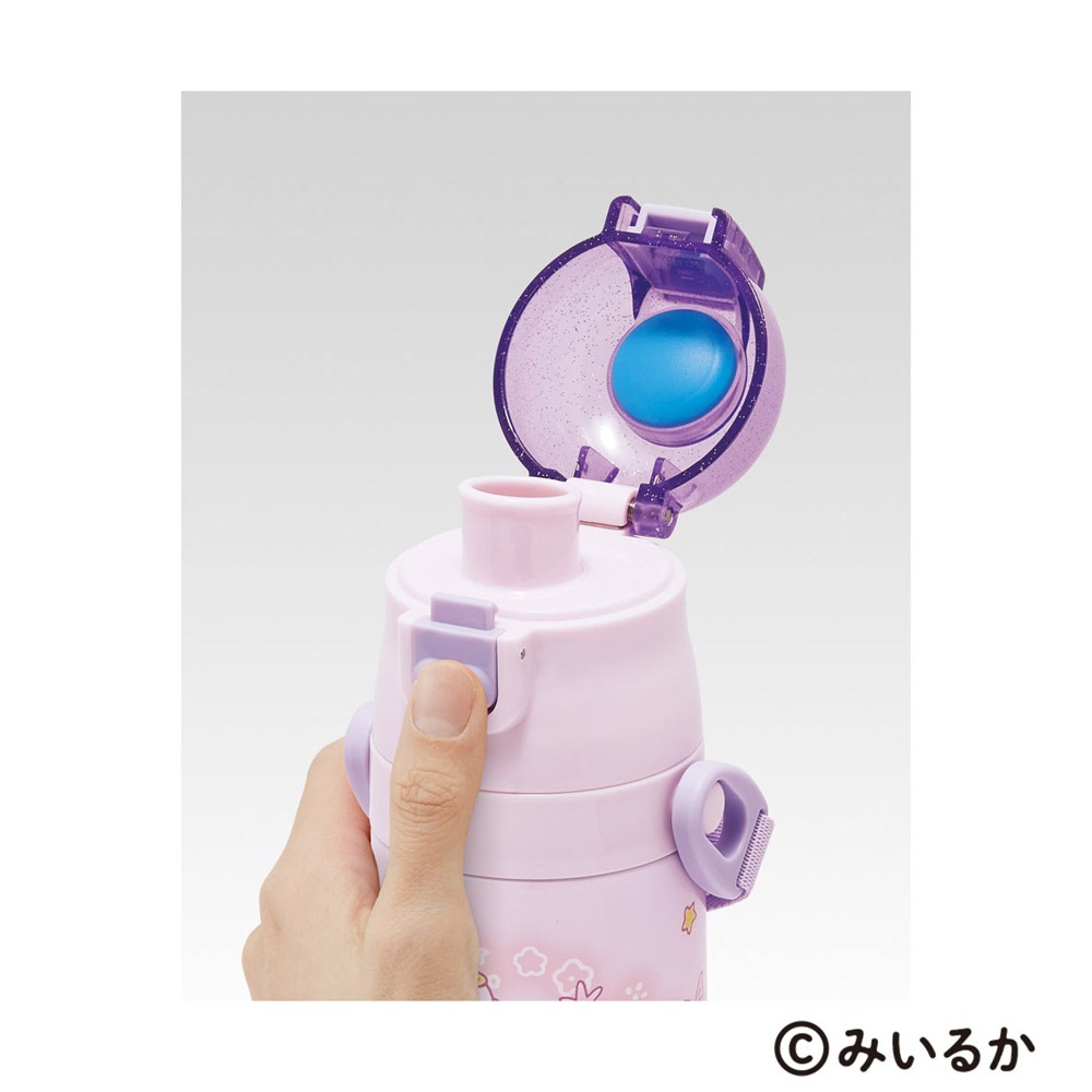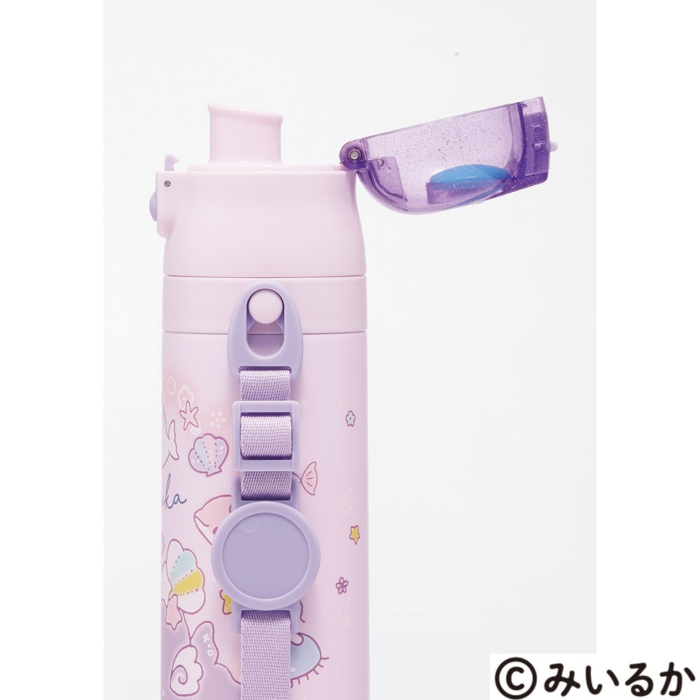ステンレス 水筒 真空二層構造 保冷専用 直飲み ダイレクト コップ ショルダーベルト 肩紐付き ワンプッシュオープン 子供用 キッズ みいるか