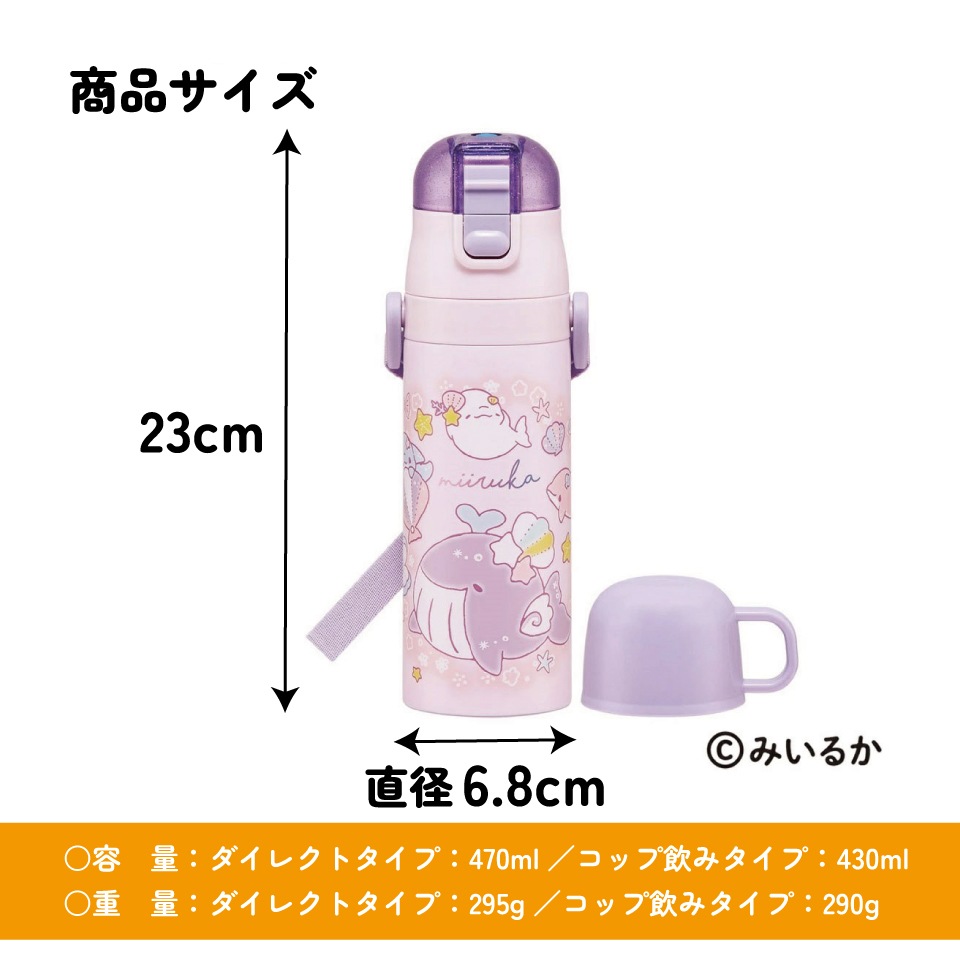 超軽量 直飲み コップ飲み兼用 2WAYステンレスボトル 470ml/430ml みいるか/SKDC4_4973307703805