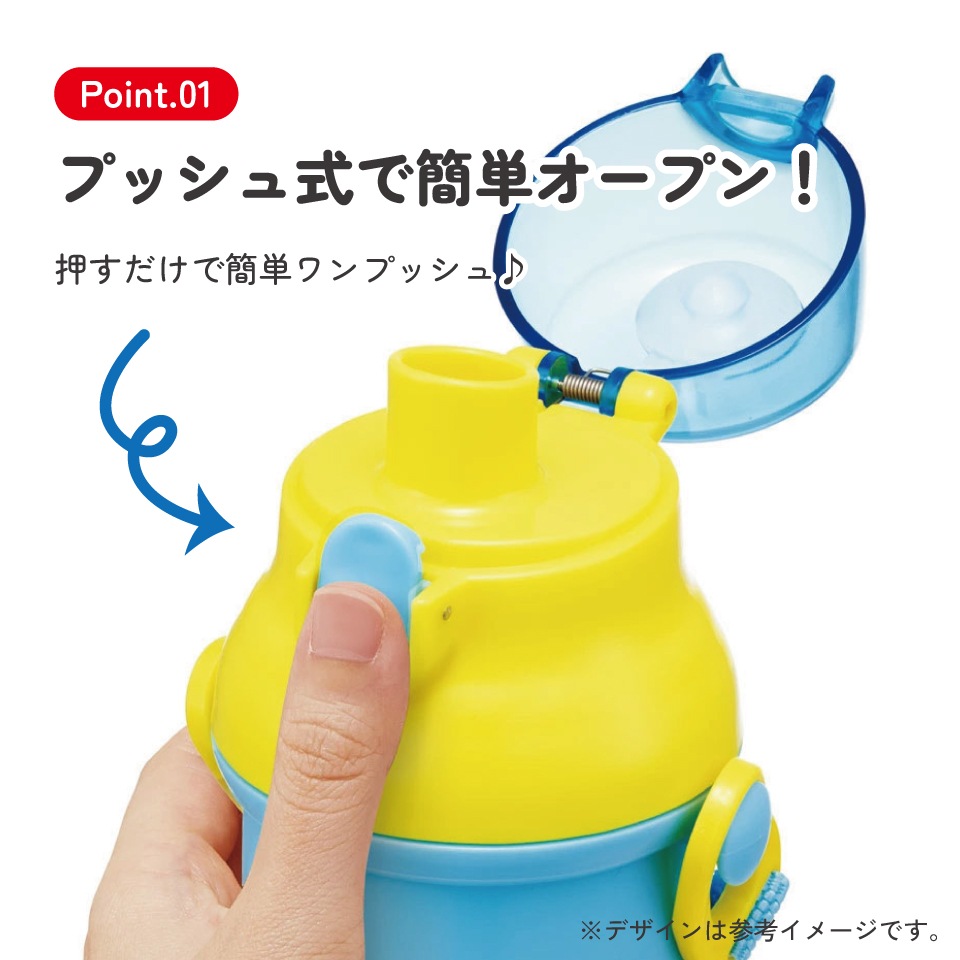 プラスチック 水筒 直飲み ダイレクト ショルダーベルト 肩紐付き ワンプッシュオープン 子供用 キッズ 食洗機対応 抗菌加工 日本製