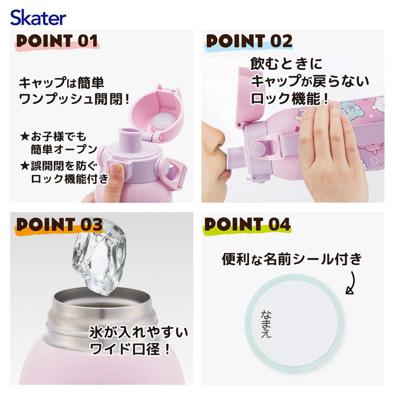 ステンレス 水筒 真空二層構造 保冷専用 直飲み ダイレクト ショルダーベルト 肩紐付き ワンプッシュオープン 子供用 キッズ 中国製 らぶい~ず