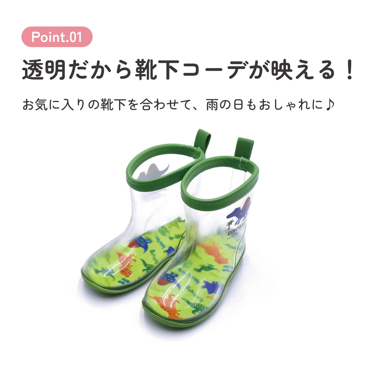 透明 レインブーツ 長靴 15cm 子供 かわいい クリア キッズ 雨具 レイングッズ スケーター skater RIBTCL15 ディノサウルス 恐竜 ダイナソー 男の子 男子