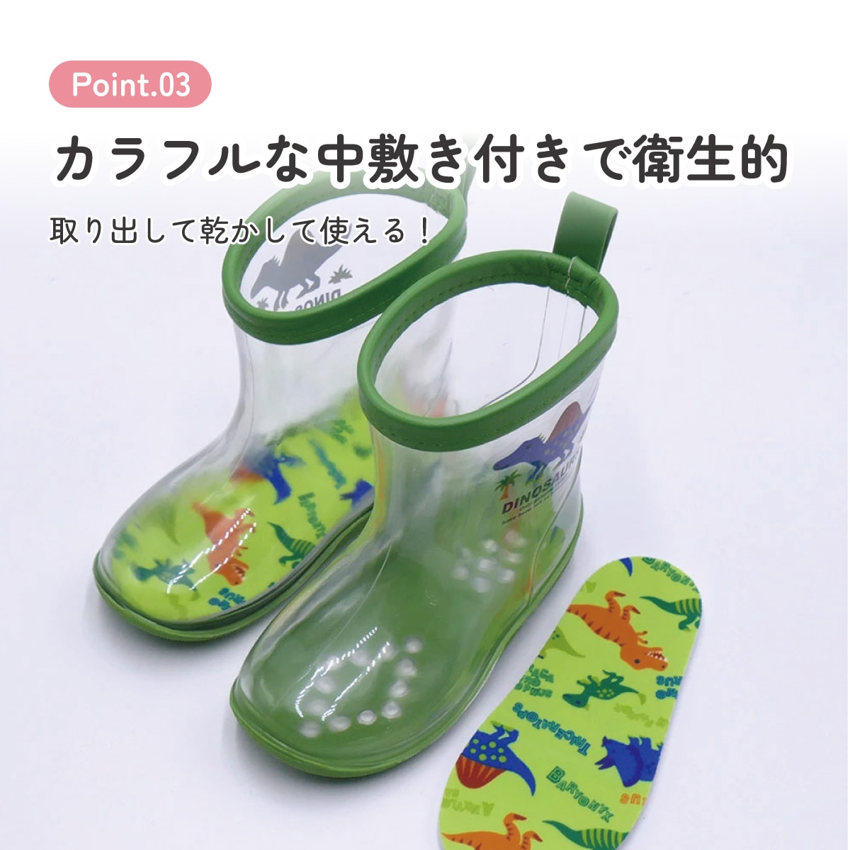カラフルな中敷き付きで、取り出して乾かして使えるので衛生的。