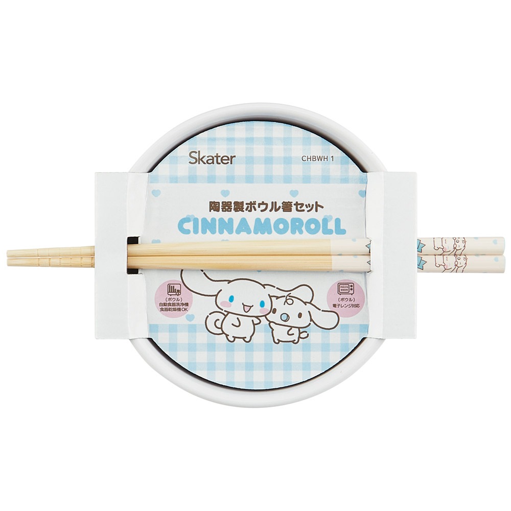 陶器製 ボウル 箸 セット 600ml 21cm 食器 鉢 お椀 丼 竹箸 カトラリー 焼き物 陶物 可愛い 便利 CHBWH1 シナモロール シナモン みるく サンリオ 女の子 女子【陶製 食事 キャラクター キッズ こども 大人】