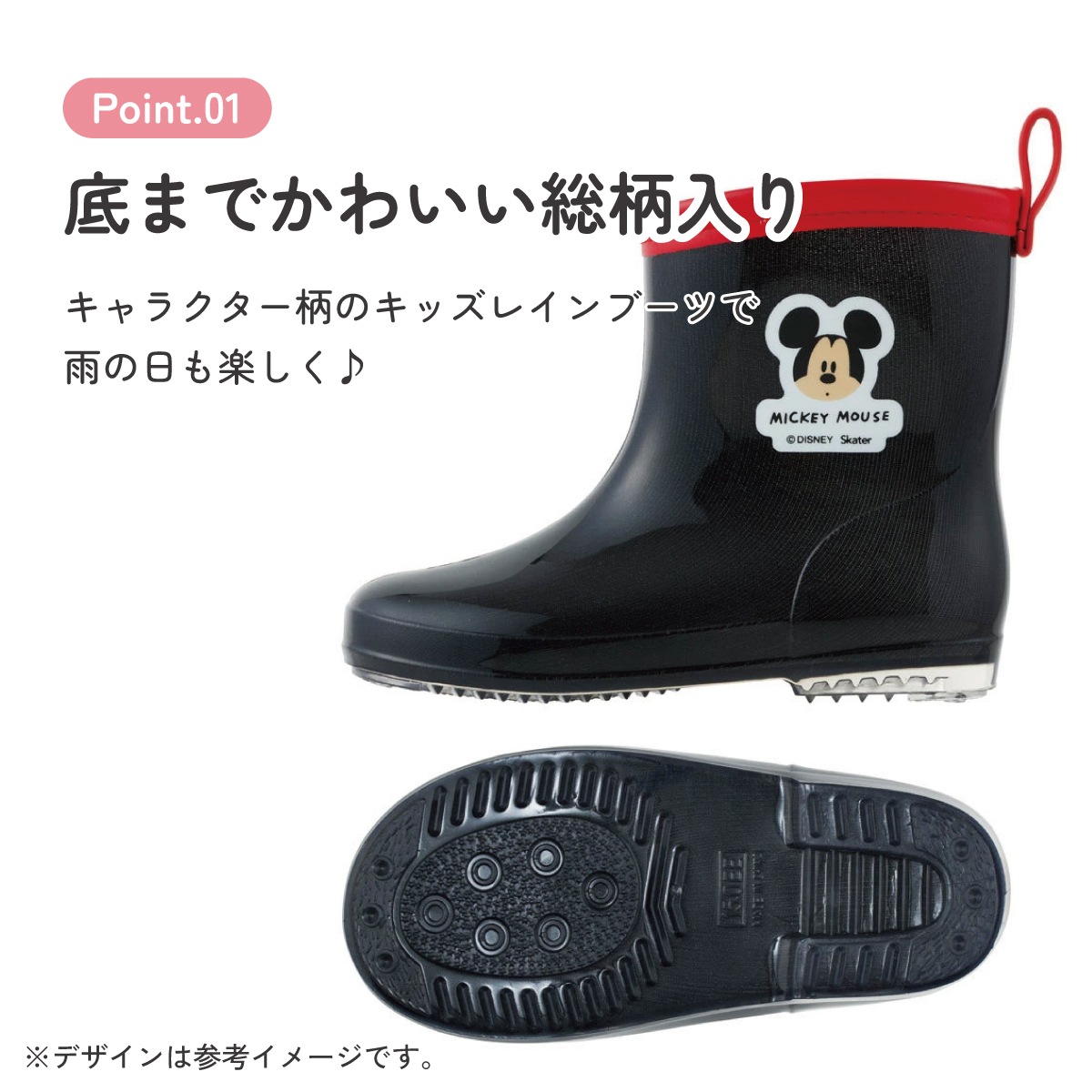 長靴 キッズ 子供 15cm かわいい キャラクター ローカット レインブーツ 2歳 3歳 skater スケーター ribt15 ミッキーマウス ミッキー Mickey 男の子 女の子