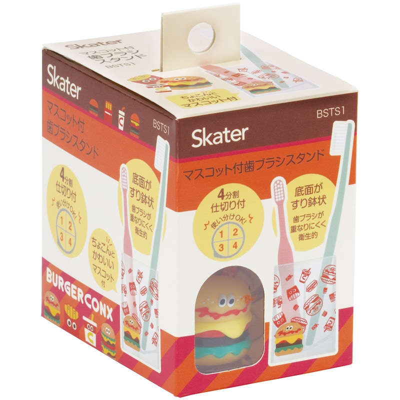 マスコット付き 歯ブラシ スタンド 収納 仕切り 整理 歯磨き 洗面台 キャラクター スケーター skater BSTS1 バーガーコンクス BURGER CONX 男の子 女の子【歯ブラシ立て 歯ブラシ入れ 衛生的 かわいい】