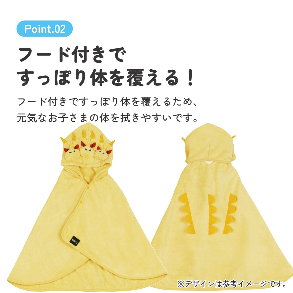 フード 付き バスポンチョ ベビー 出産祝い バスタオル 吸水 速乾 キッズ skater スケーター BPO1 タオル キングギドラ ゴジラ Godzilla グッズ【赤ちゃん こども 子ども 子供 マイクロファイバー 小さめ ギフト】