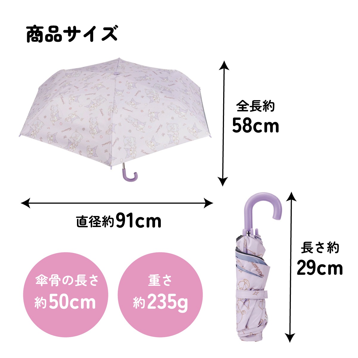 日傘 晴雨兼用傘 キッズ 傘 uvカット 軽量 遮熱 晴雨兼用 折りたたみ 子供用 50cm skater スケーター UBOTSR1 クロミ クロミちゃん サンリオ 女の子 女子