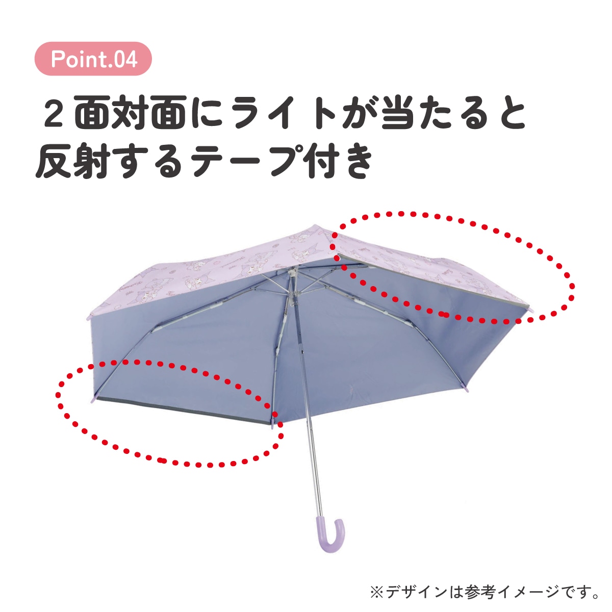 2面対面にライトが当たると反射するテープ付き。
