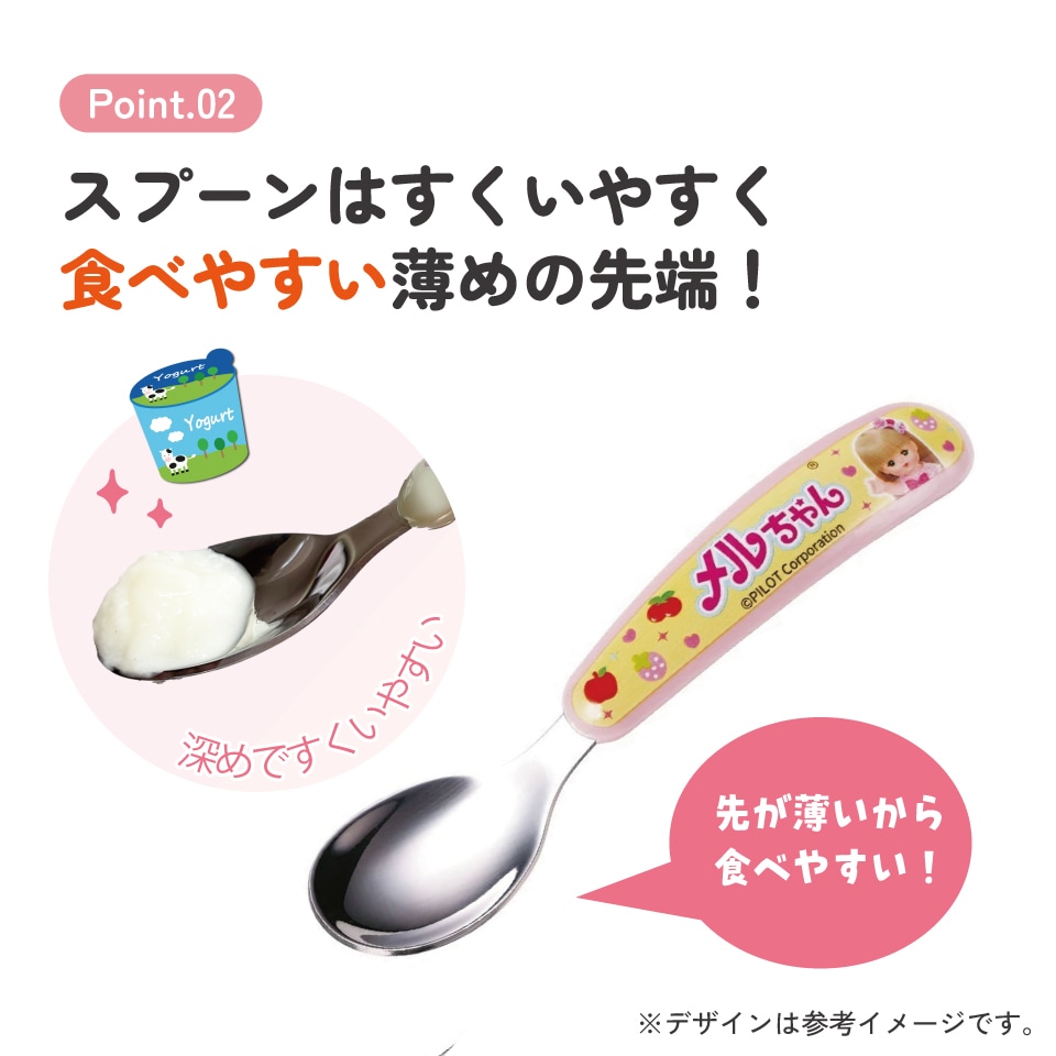 スプーンはすくいやすく食べやすい薄めの先端。