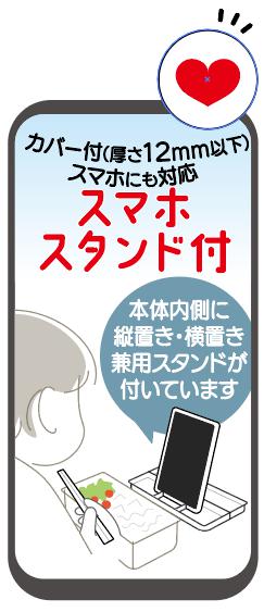 本体内側にカバー付きスマホ(厚さ12mm以下)対応。