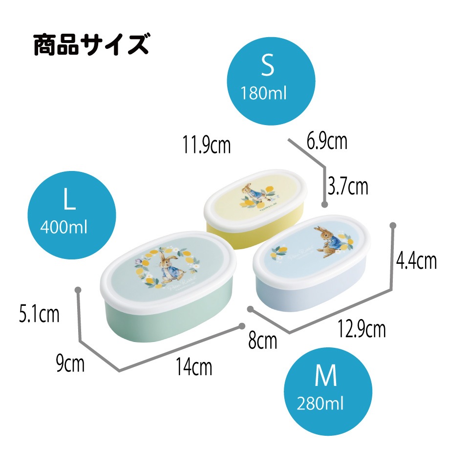 プラスチック 保存容器 入れ子式 3サイズ 400ml・280ml・180ml 抗菌加工 電子レンジ対応 日本製 ピーターラビット うさぎ 女子 女性 レディース