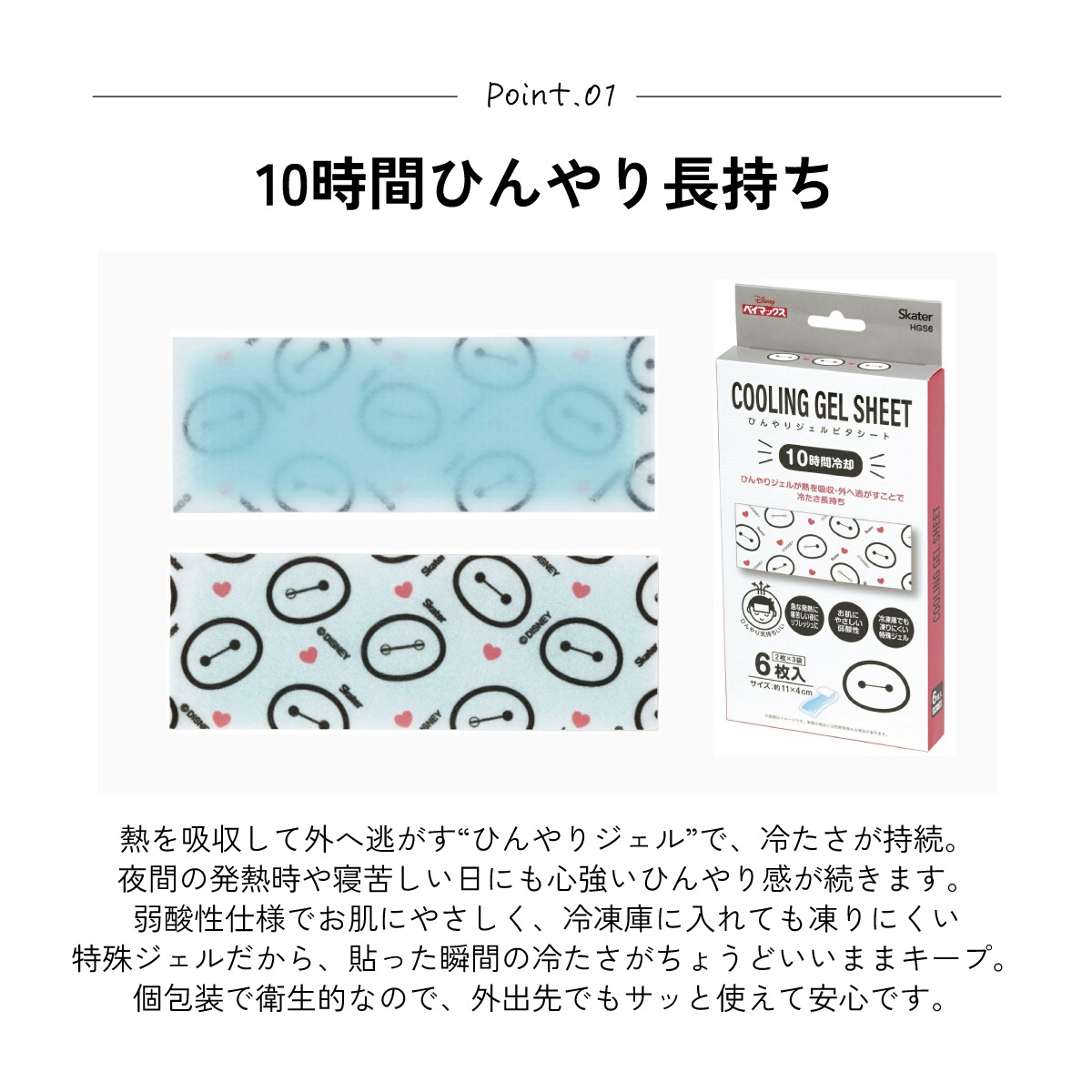 【メール便対象品】 スケーター ジェル冷えシート 6枚入り ベイマックス ディズニー skater HGS6 冷感シート 冷感ジェル 冷感ジェルシート ひんやりシート 発熱 頭痛【ひんやりジェル アイシング 熱冷まし 男の子 女の子】