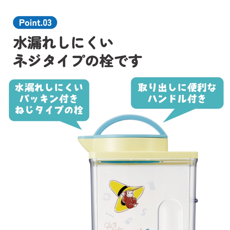 スケーター 冷水筒 ピッチャー ジャグ 麦茶ポット 卓上ポット 2l 横置き 可能 2リットル skater CJ22N おさるのジョージ アルファベット ひとまねこざる【キャラクター グッズ ピッチャー 水差し プラスチック 麦茶 ポット】