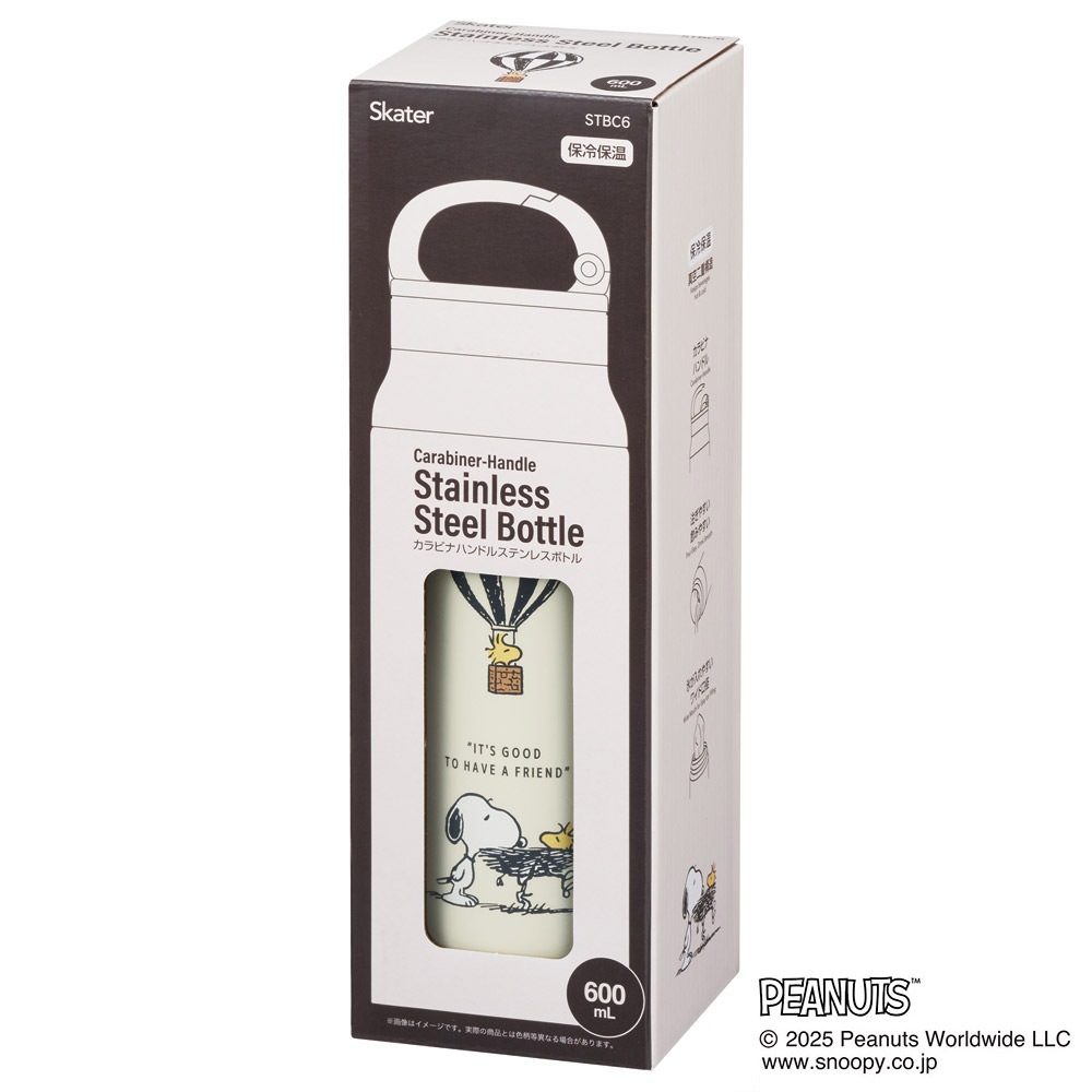 スケーター 水筒 600ml カラビナ ハンドル ステンレス ボトル 保温 保冷 キッズ 子供 STBC6 スヌーピー SNOOPY ピーナッツ 女性 レディース【キャラクター こども 真空二重構造 水分補給】