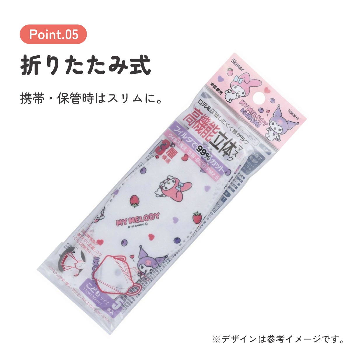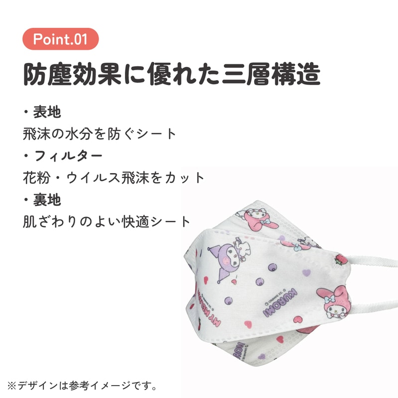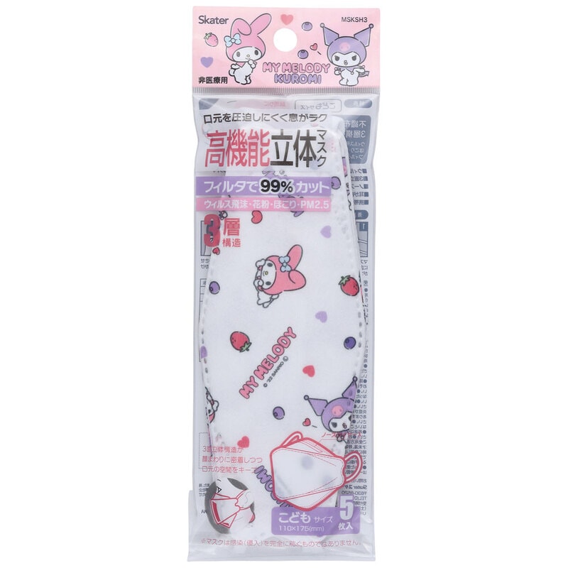 メール便対応 子ども用 不織布 高機能立体マスク 5枚入 マイメロディ&クロミ パステルフラワー/MSKSH3_582509