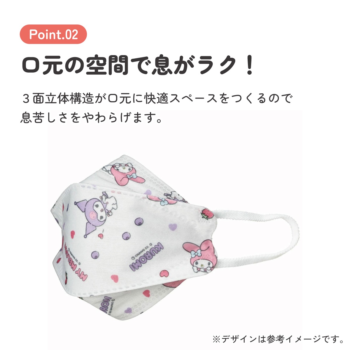 ■3面立体構造が作る口元の空間で、息がラク。