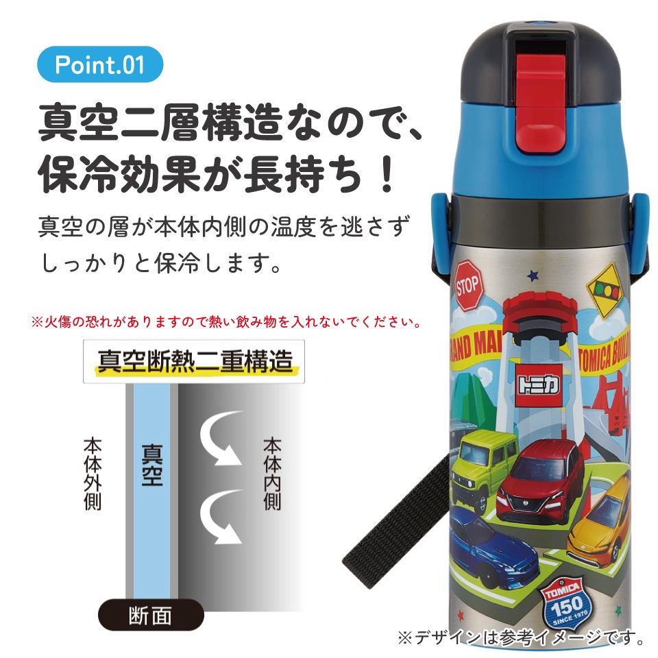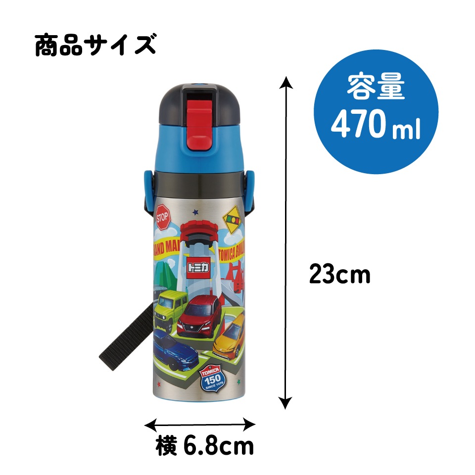 スケーター 水筒 子供 470ml 直飲み ダイレクト キッズ ステンレスボトル skater SDC4 トミカ 26年 tomica 車 くるま 男の子 男子 男児【幼稚園 キャラクター ワンタッチ こども 保冷 ショルダーベルト付き 子ども】