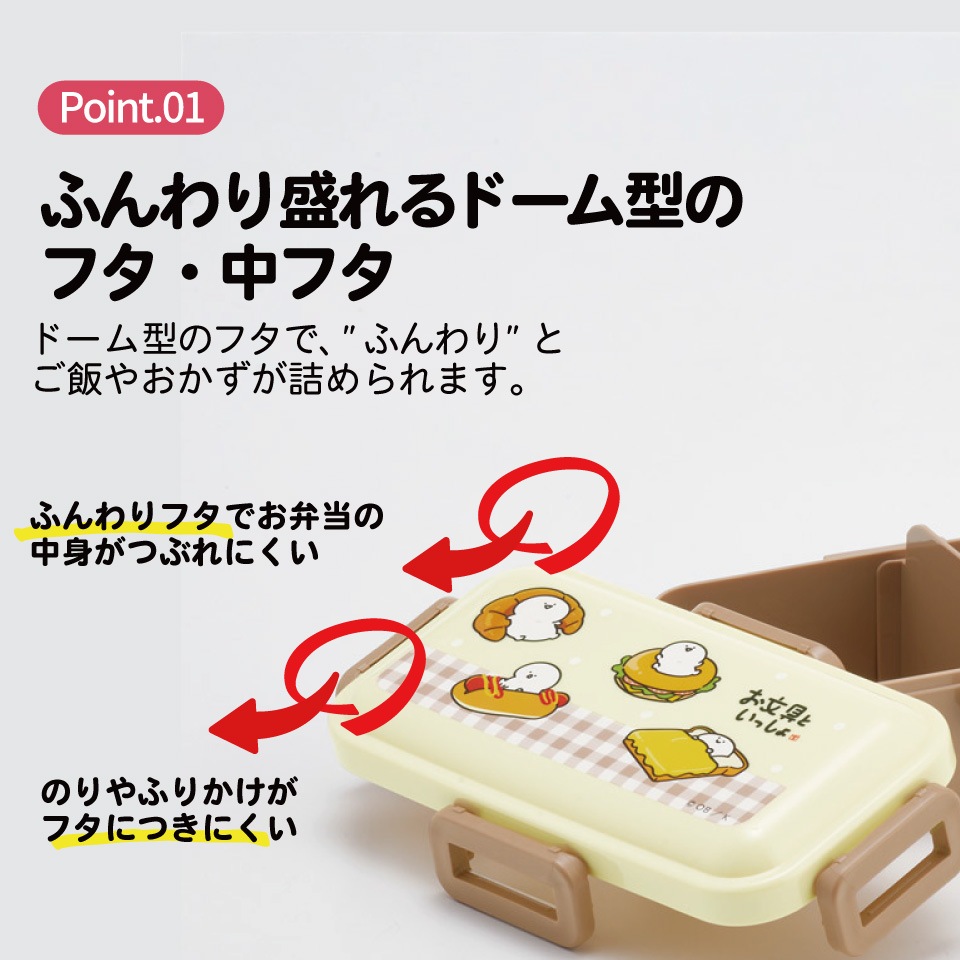ドーム型のフタで、"ふんわり"とご飯やおかずが詰められる。