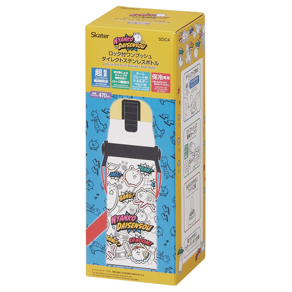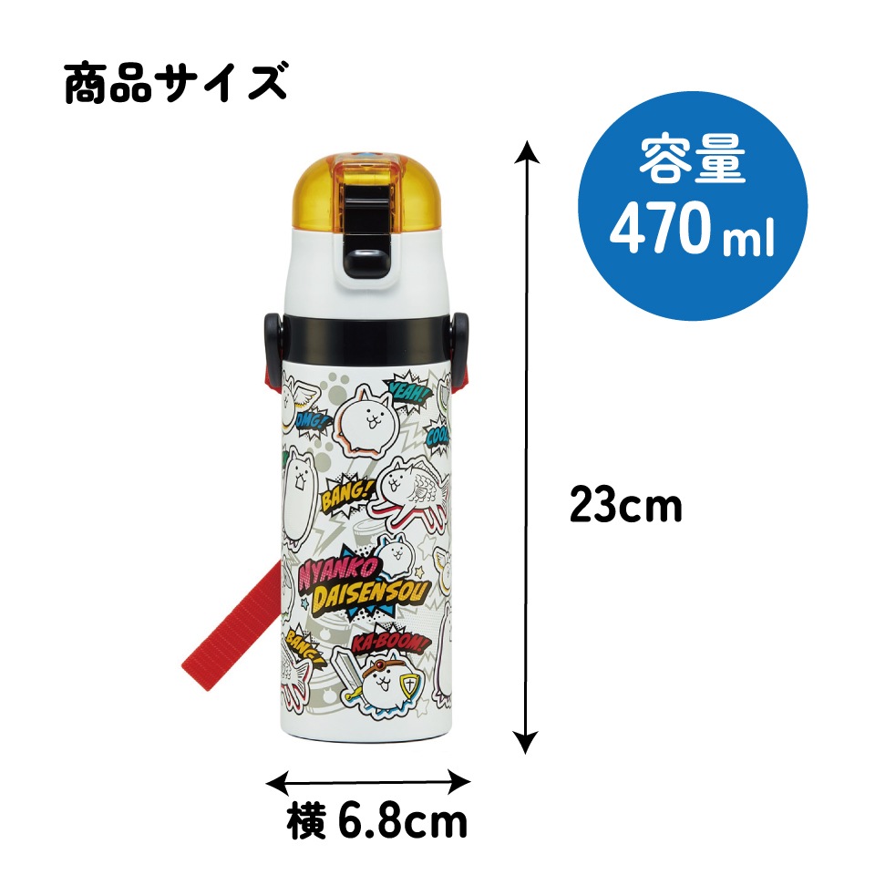 スケーター 水筒 子供 470ml 直飲み ダイレクト キッズ ステンレスボトル skater SDC4 にゃんこ大戦争 26年 にゃんこ 男の子 女の子 男子【幼稚園 キャラクター ワンタッチ こども 保冷 ショルダーベルト付き 子ども】