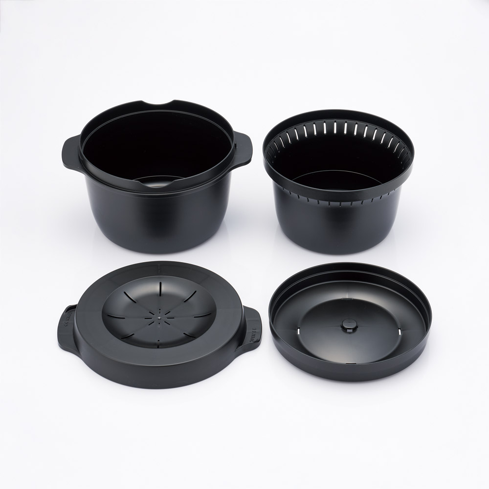 外容器に水を入れ、発生した蒸気が内容器全体を包み込み、ムラなく加熱します。