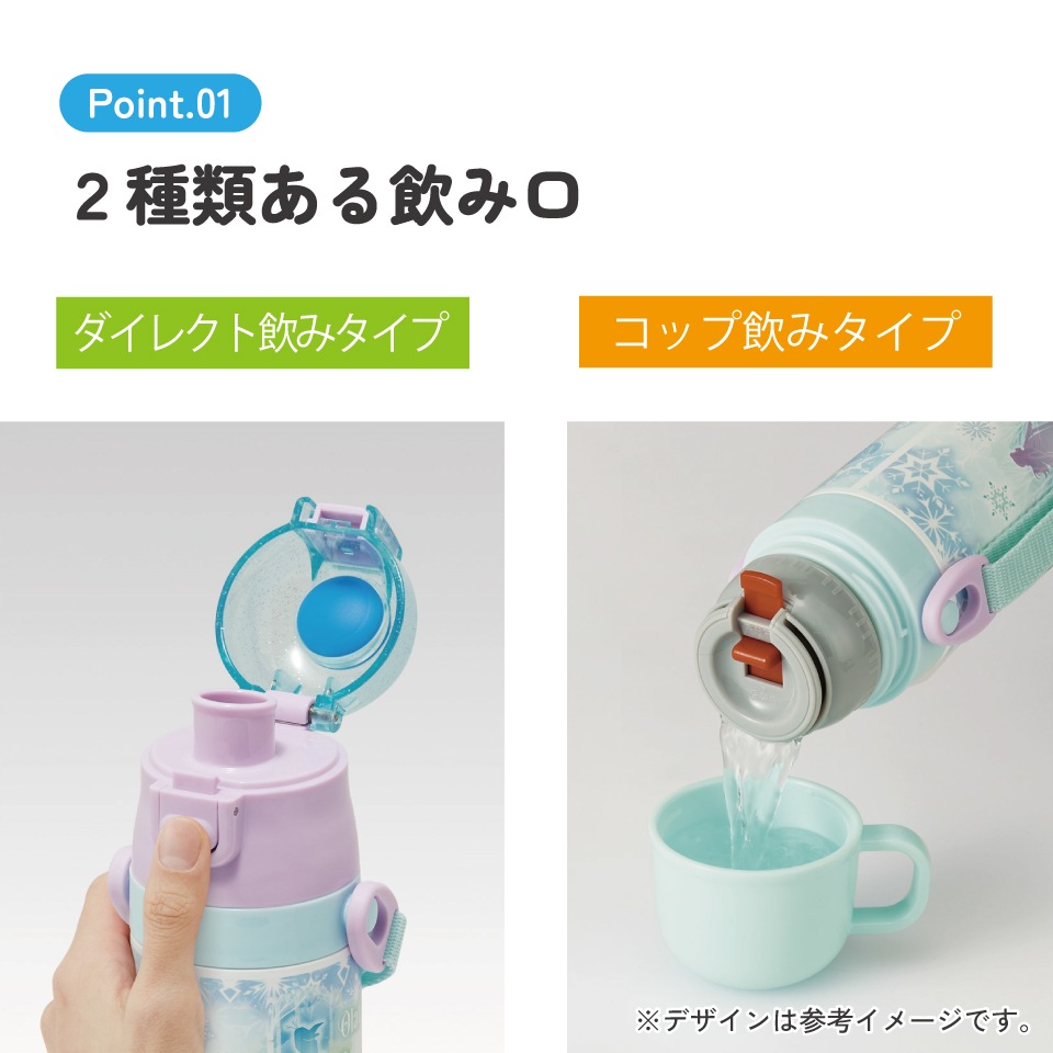 【4/20までの特別価格】スケーター 水筒 子供 2WAY 直飲み 470ml コップ飲み 430ml ステンレス 保冷 ワンタッチ skater SKDC4 アナと雪の女王 26年 アナ雪 ディズニー【幼稚園 キッズ 軽い キャラクター 紐 ショルダーベルト 付き ワンプッシュ】