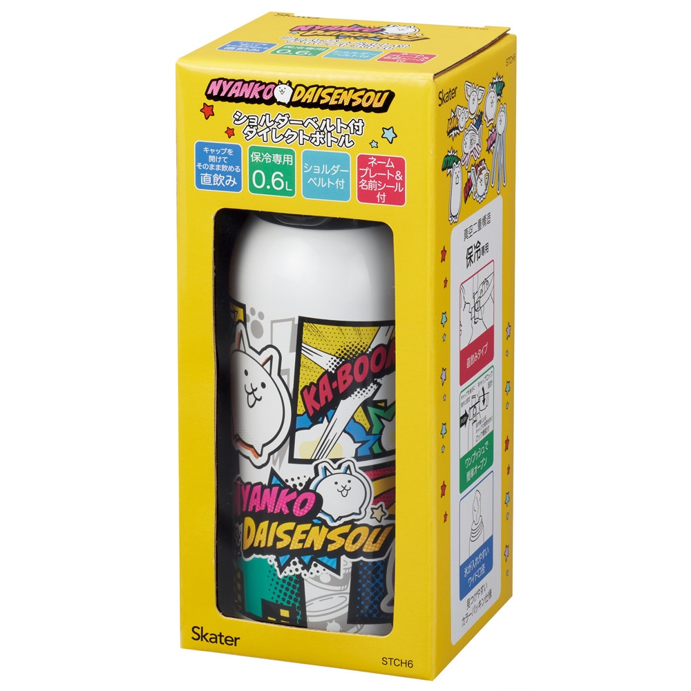 スケーター 水筒 600ml 保冷 ステンレス 直飲み ボトル ショルダー ベルト 紐 キャラクター skater STCH6 にゃんこ大戦争 26年 にゃんこ 男の子 女の子 男子【小学生 キッズ 子供 子ども ワンタッチ かわいい 600】