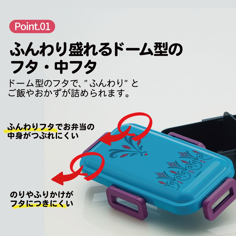 ドーム型のフタで、"ふんわり"とご飯やおかずが詰められる。